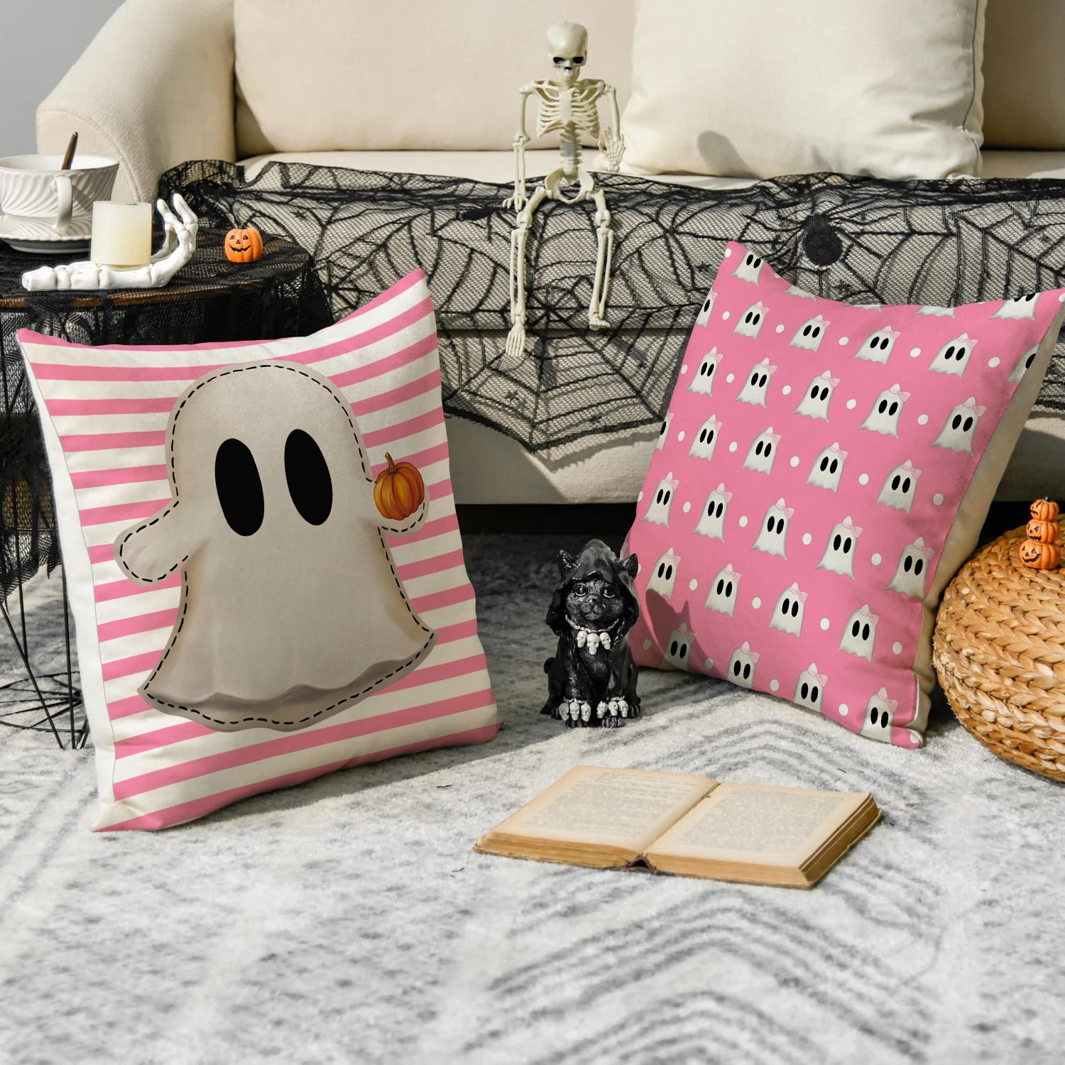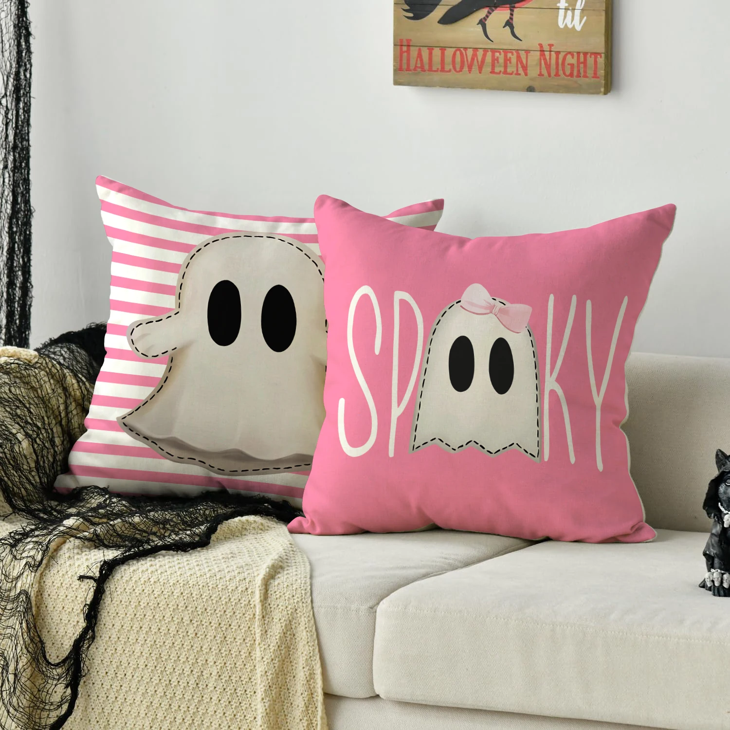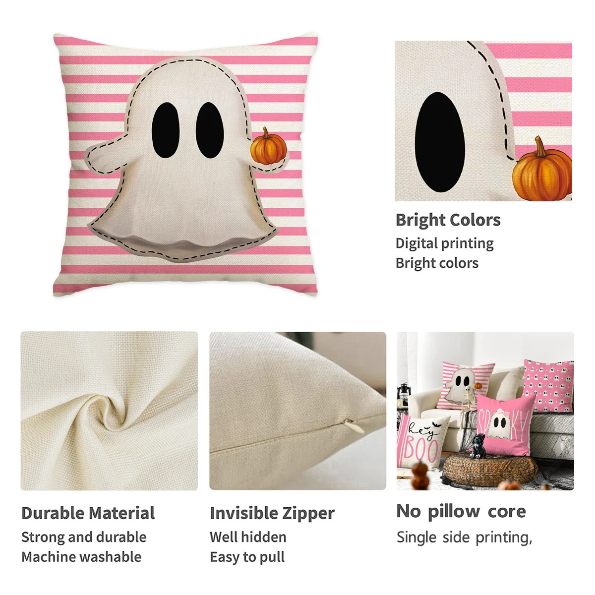 1/4pcs Halloween Pillow Cover, Halloween Night Cute Ghost Cushion Cover, Decorative Sofa, Living Room, Bedroom Cushion Cover