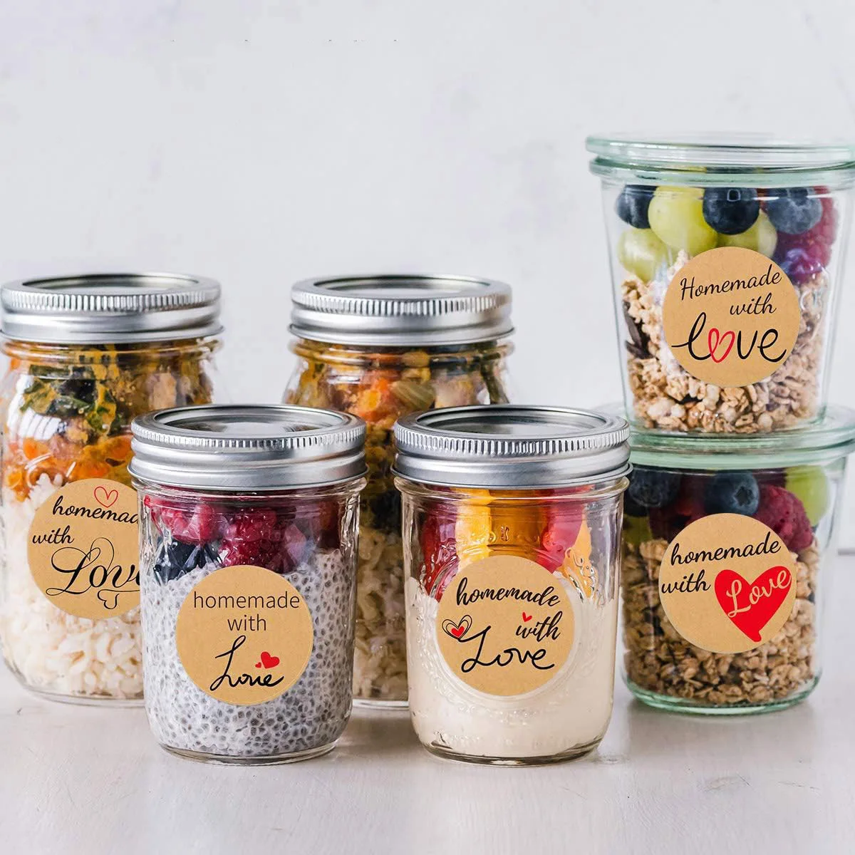 100-500pcs 1inch Vintage Kraft Paper Handmade With Love Stickers for Package Thank You Stationery Adhesive Labels Baking Seals
