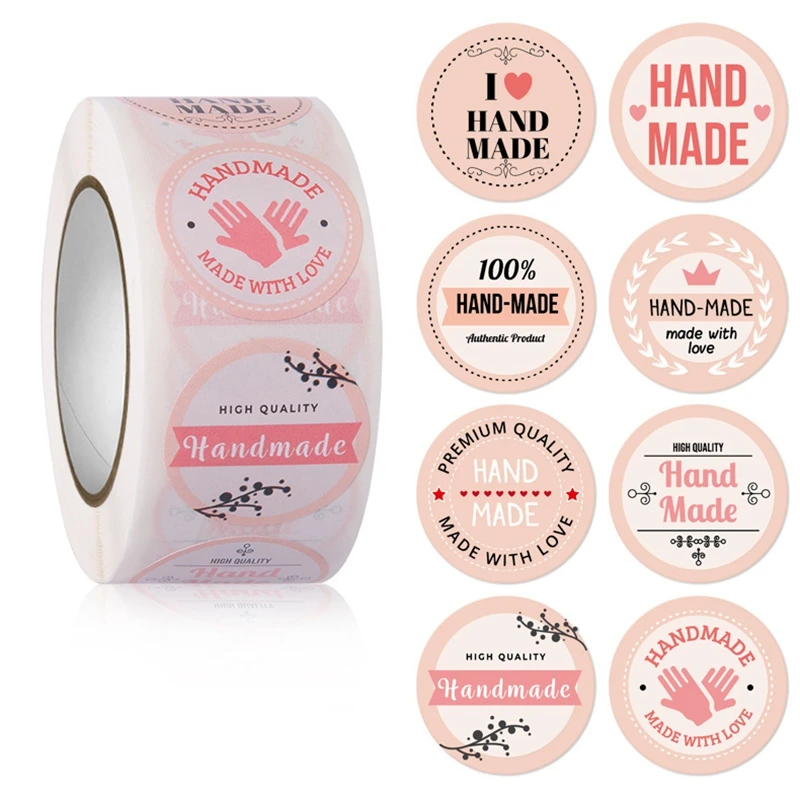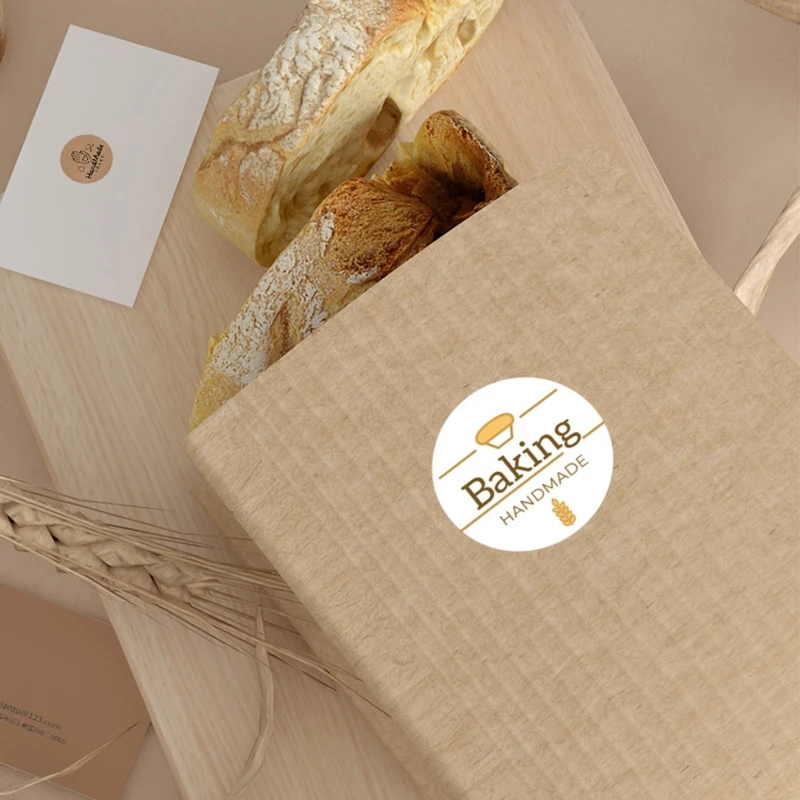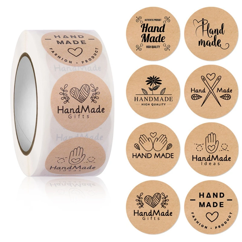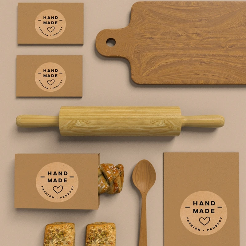 100-500pcs Kraft Paper Handmade with Love Stickers Thank You Sticker for Baking Packaging Envelope Seals Small Business Stickers