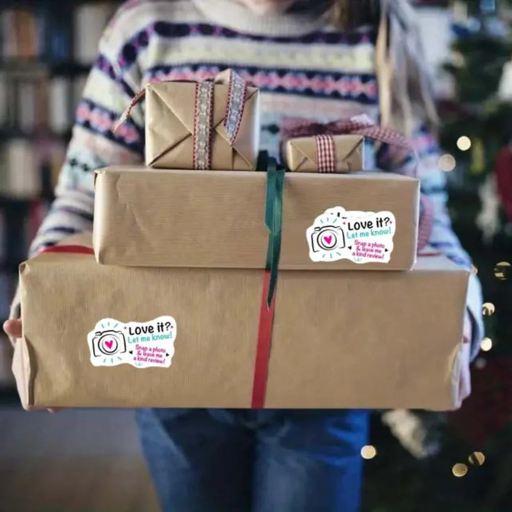 100pcs Love it Let Me Know with Cute Camera Design Stickers 1.6inch Thank You Stickers Bakeries Handmade Small Business Stickers
