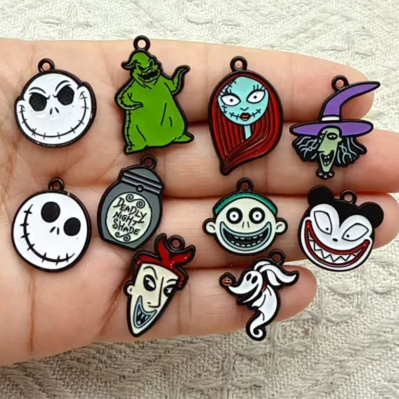 10pcs Halloween Charm Jewelry Accessories Enamel Necklace Earring Pendant Diy Making Supplies Alloy Metal Black Plated