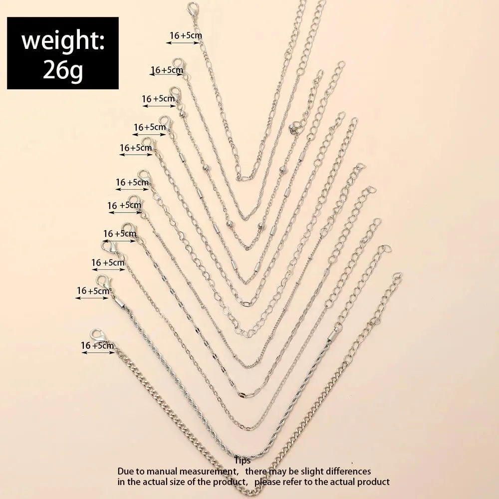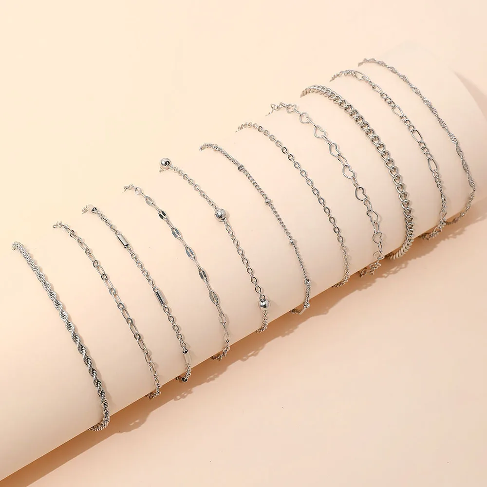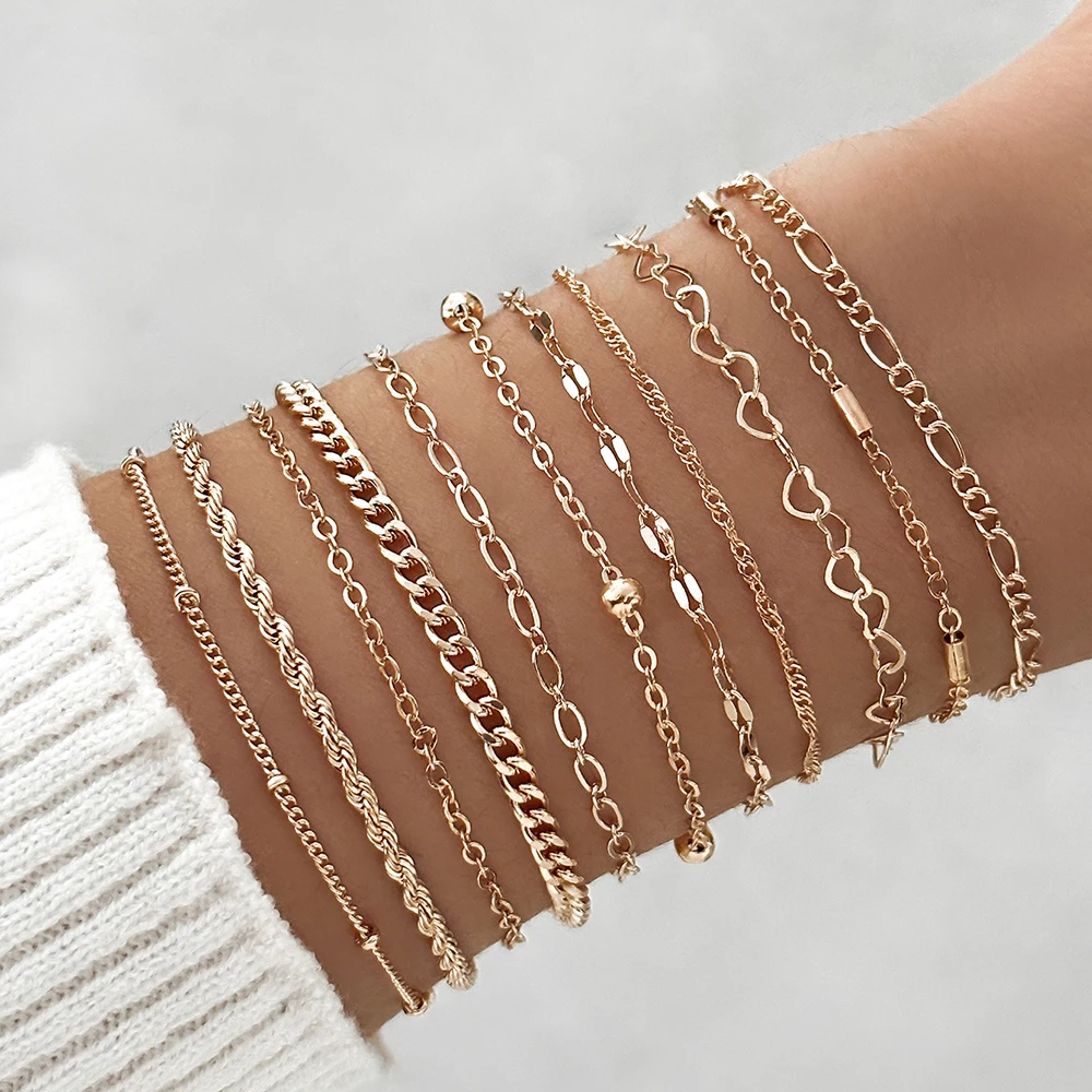 11pcs/Set Stylish Simple Punk Style Heart Beaded Splicing Hollow Chain Bracelet Set Suitable For Women's Daily Wear Gift Giving