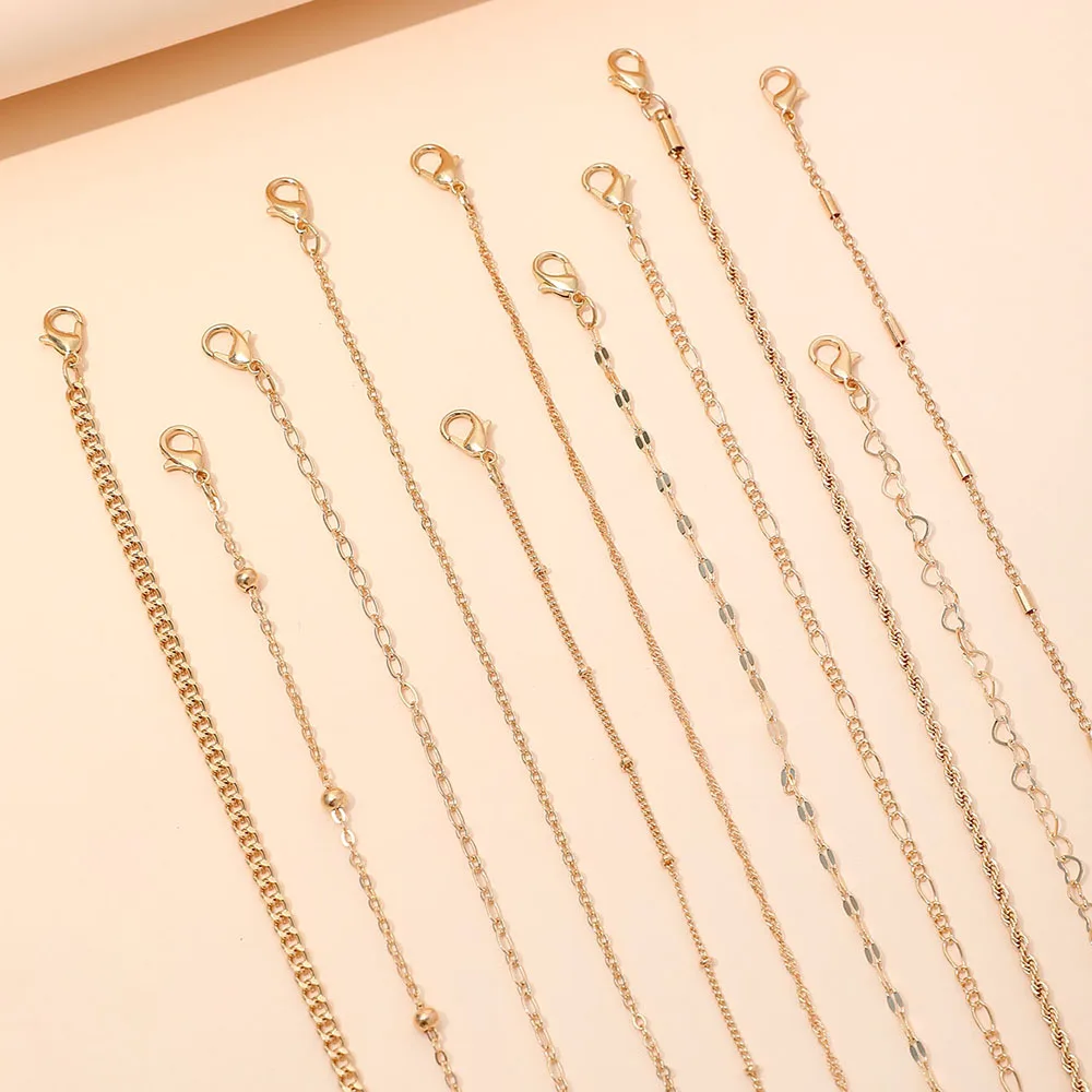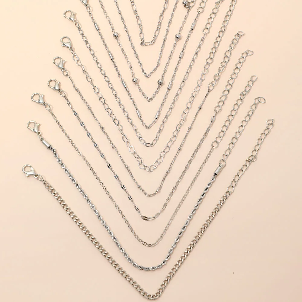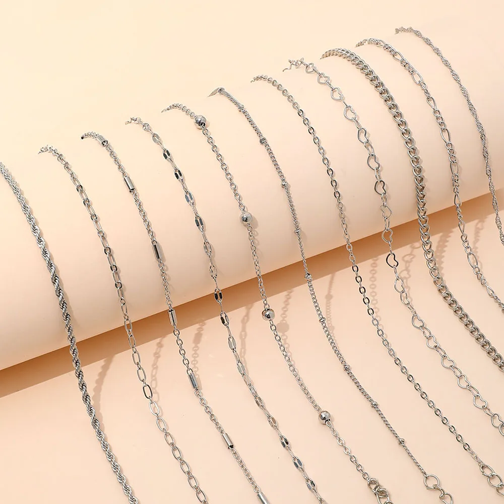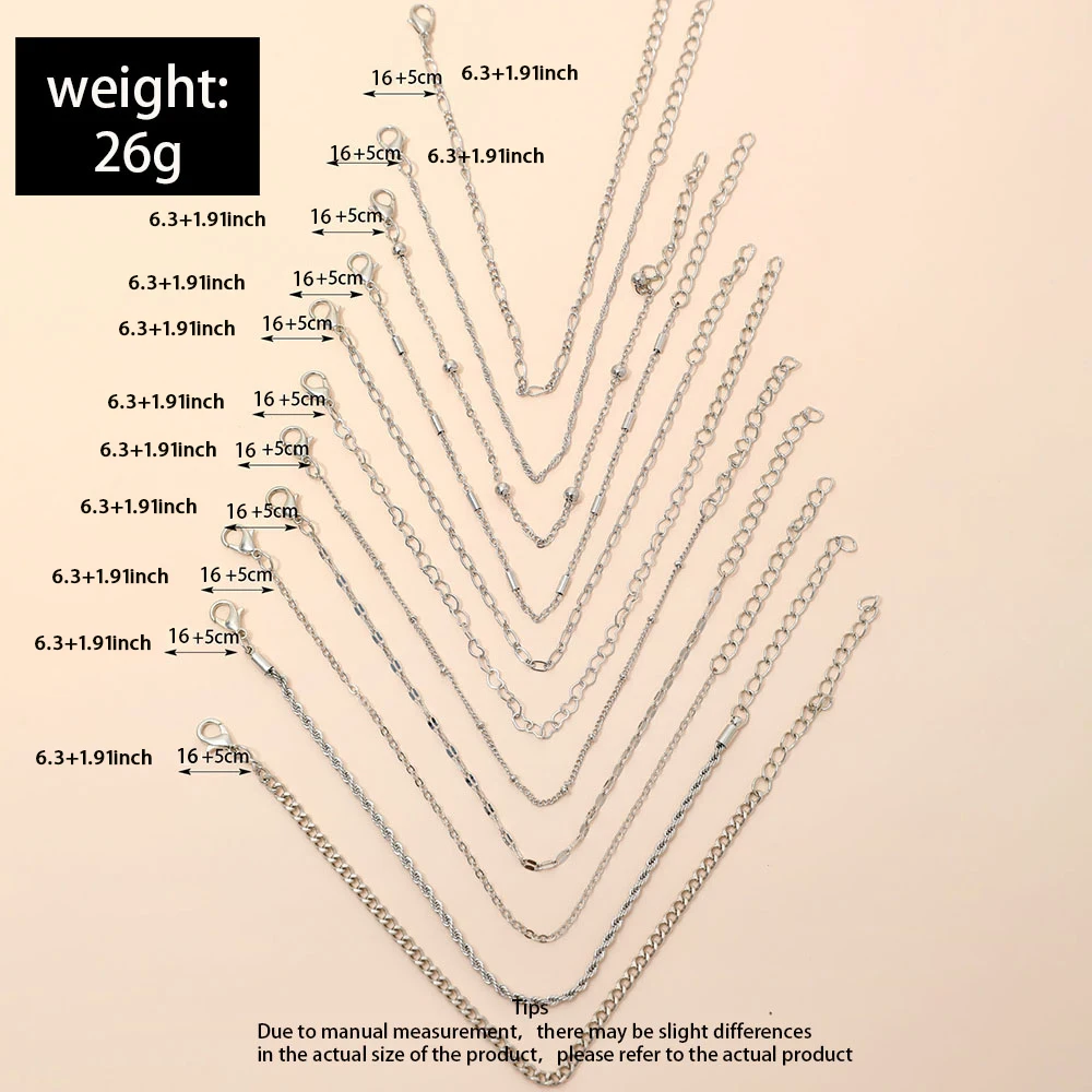 11pcs/Set Stylish Simple Punk Style Heart Beaded Splicing Hollow Chain Bracelet Set Suitable For Women's Daily Wear Gift Giving