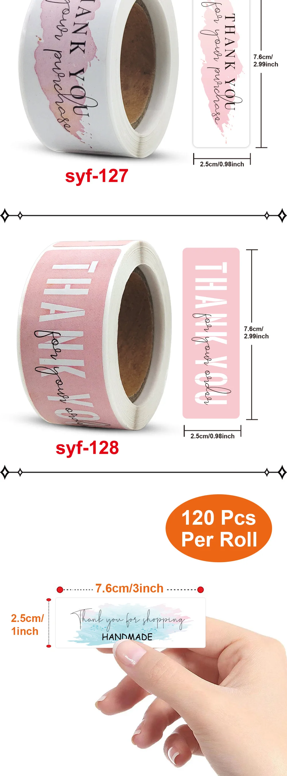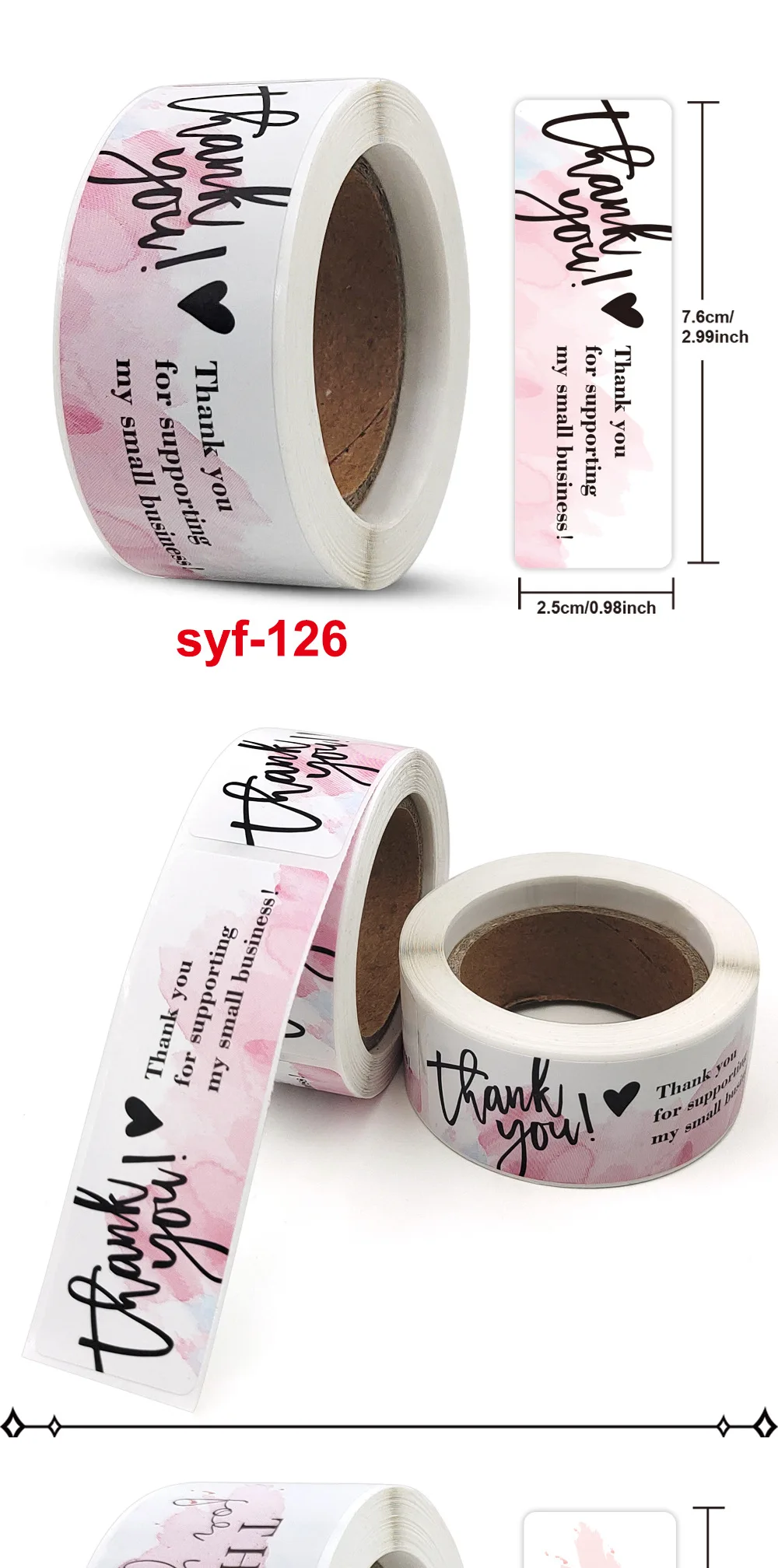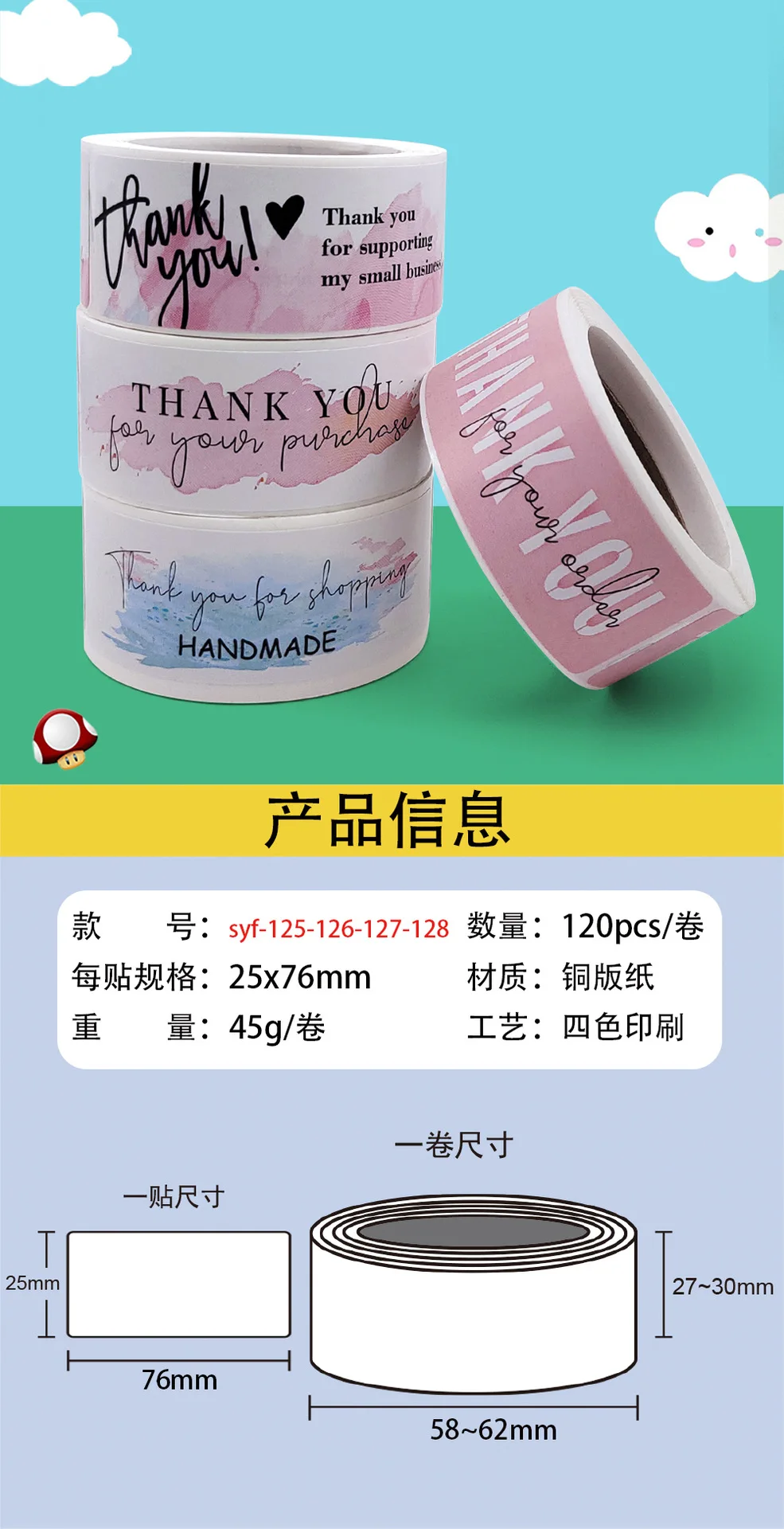 120Pcs Roll Creative DIY Flower Thank You Stickers for Handmade Products Stationery Business Envelope Lable for Gifts 1x3inch