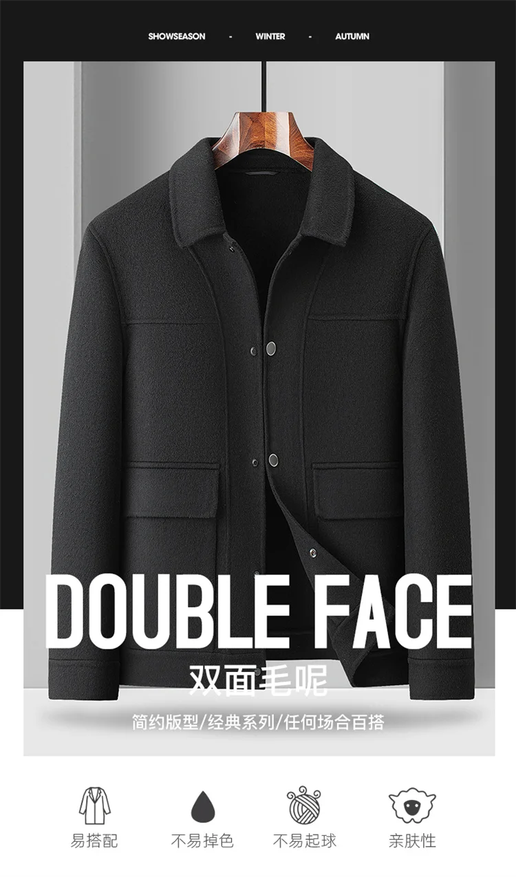 2024 Autumn/Winter New Double sided Woolen Coat High end Fabric Korean Edition Fashion Pure Handmade Woolen Coat Work Style
