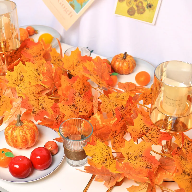 2M Artificial Maple Leaf Garland Thanksgiving Christmas Hanging Wall Decor Fake Fallen Leaves Autumn Decor Rattan Wedding Props