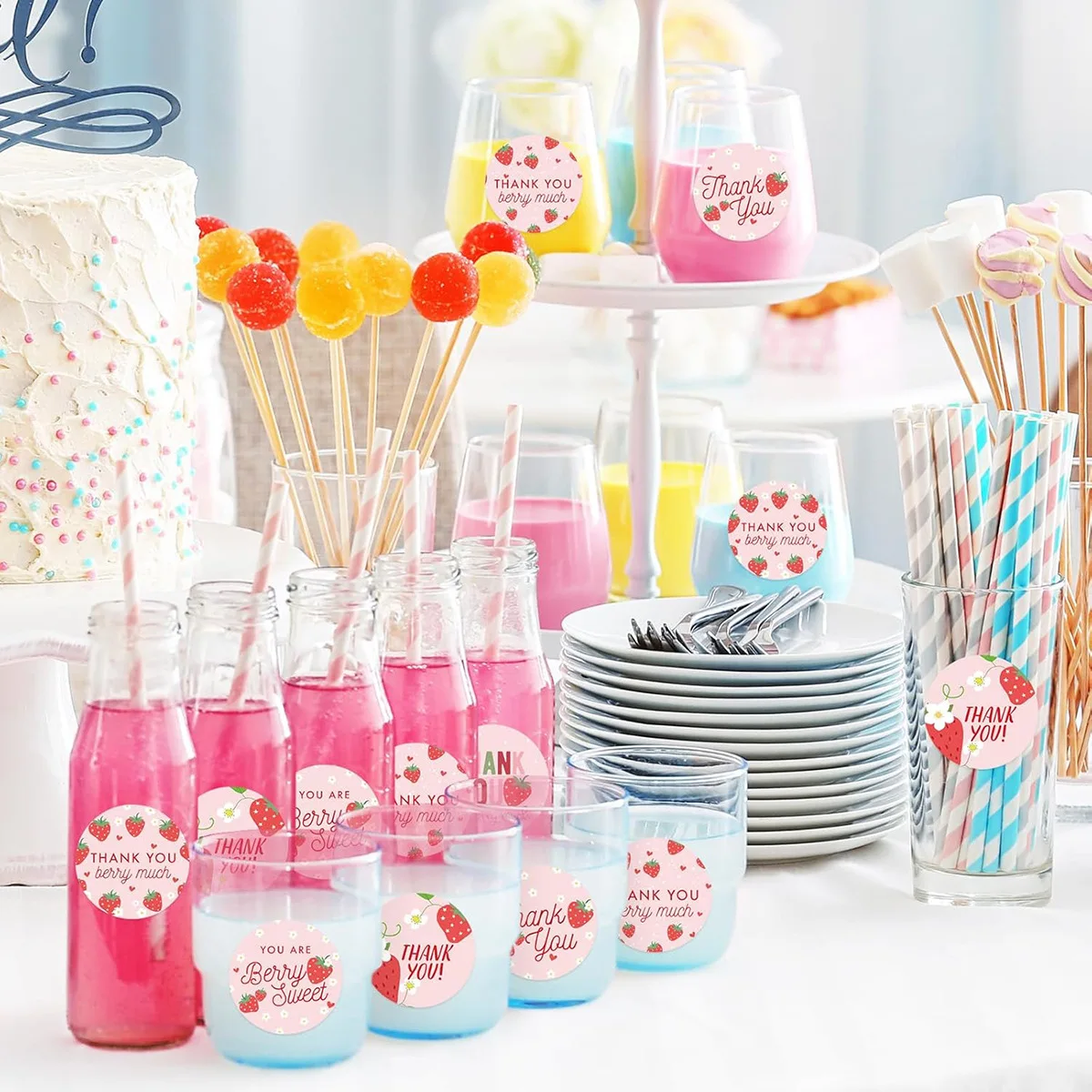 500pcs Strawberry Thank You Stickers,DIYAdhesive Labels Envelope Gift Sealing Stickers Birthday Party Cupcake Decoration Sticker