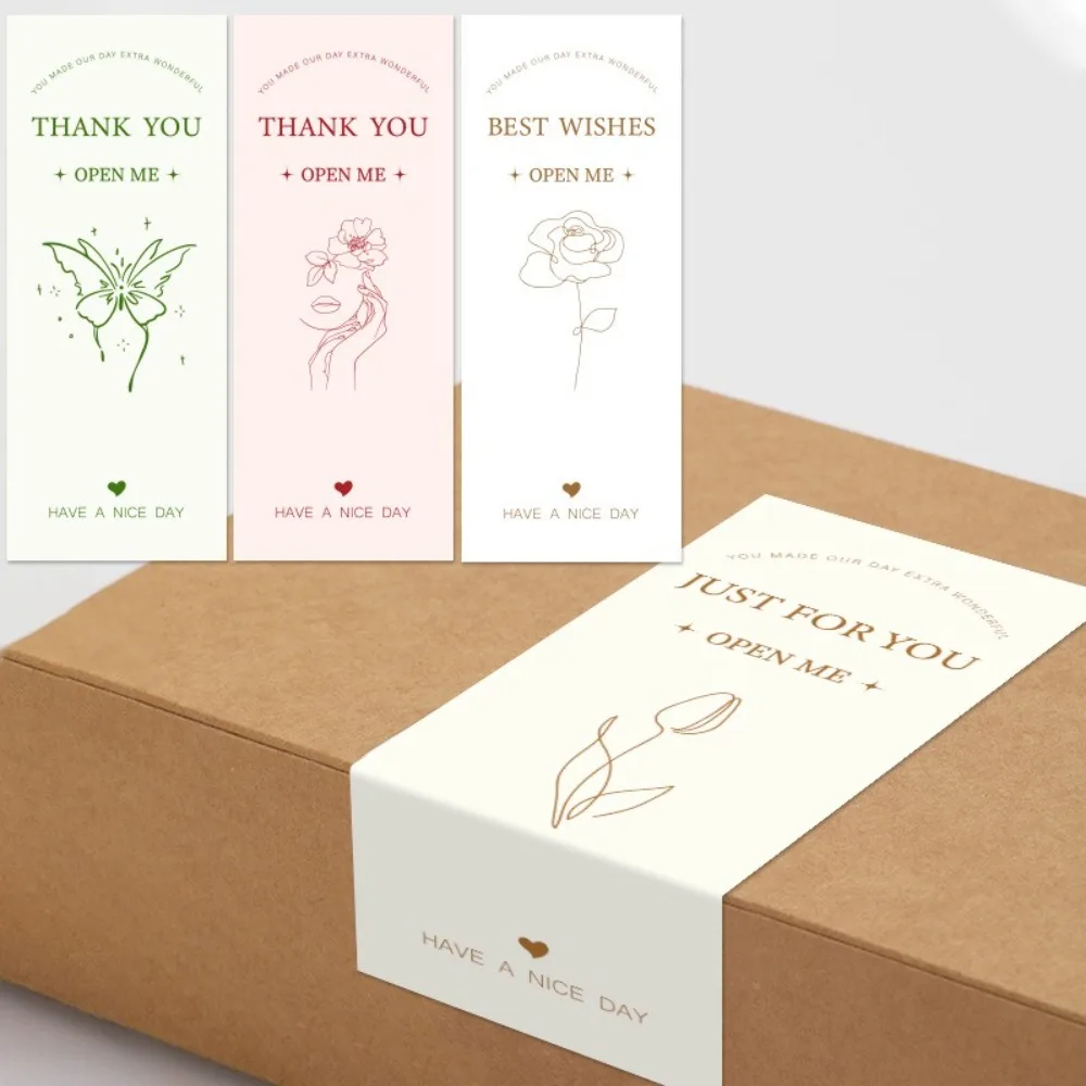 50pcs New Rectangular Thank You Sticker 6x15cm Handmade Gift Box Package Decor Flowers Pattern Stickers for Birthday Wedding