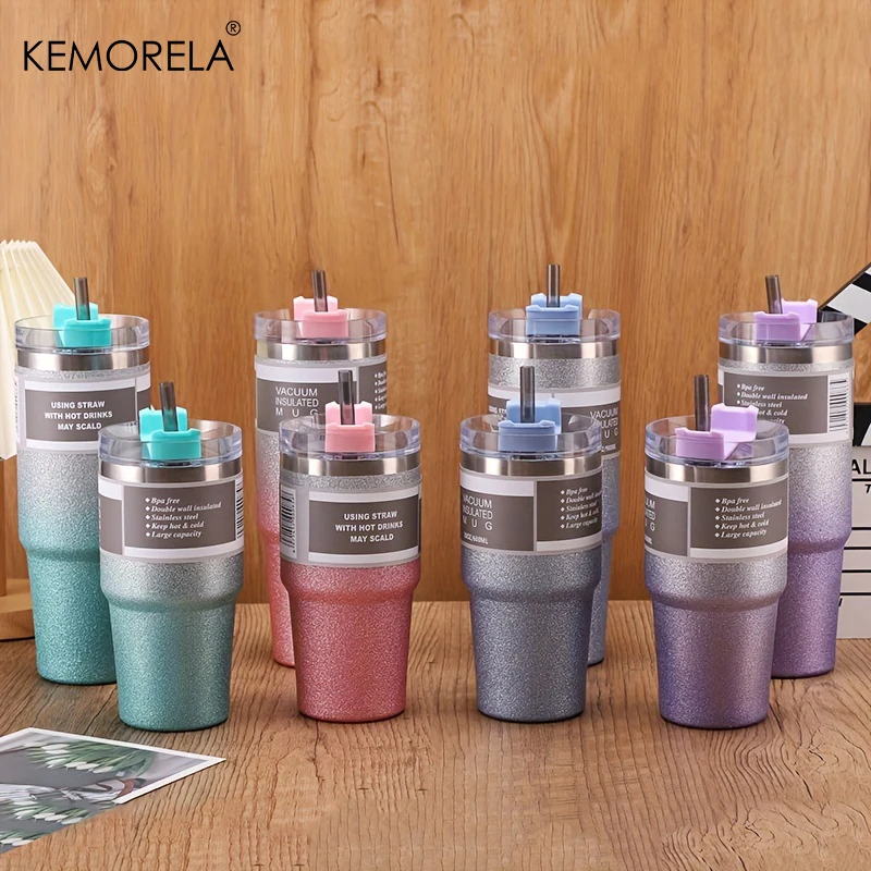 600/900ML Vacuum Stainless Steel Thermos Cup With Lid and Straw With Handle Diamond Paint Insulated Tumblers Outdoors Travel Mug