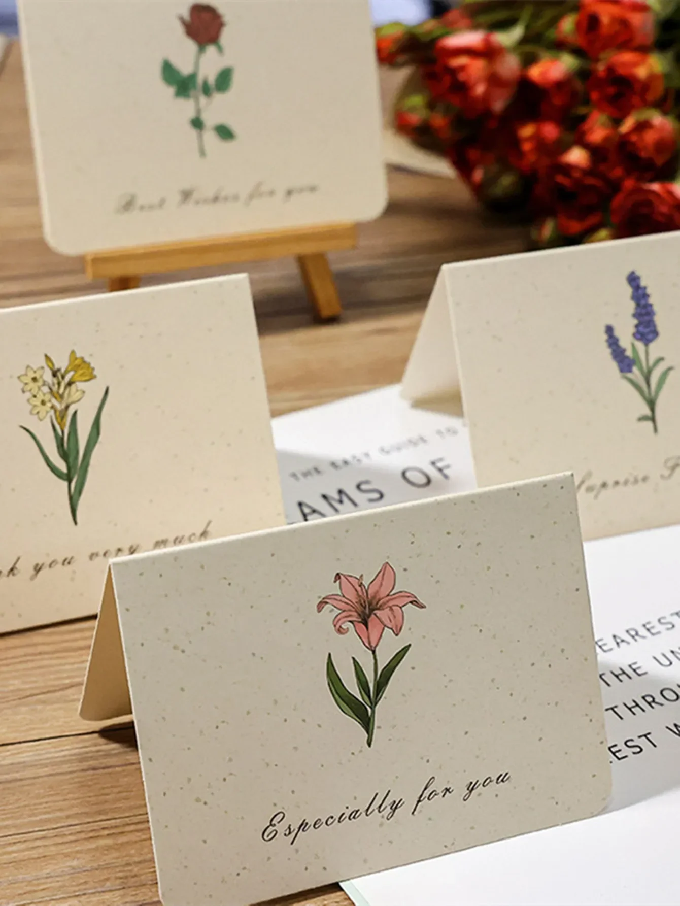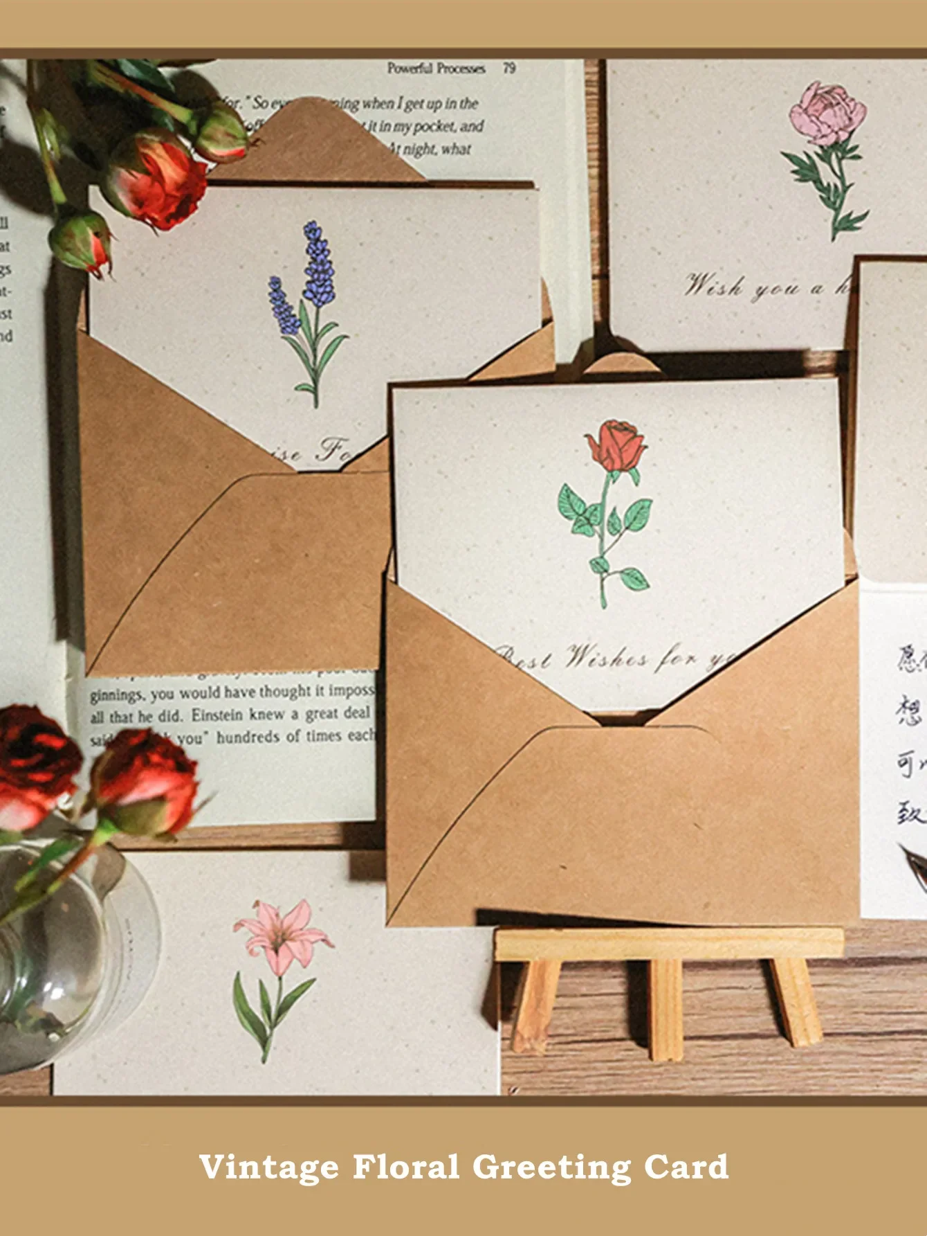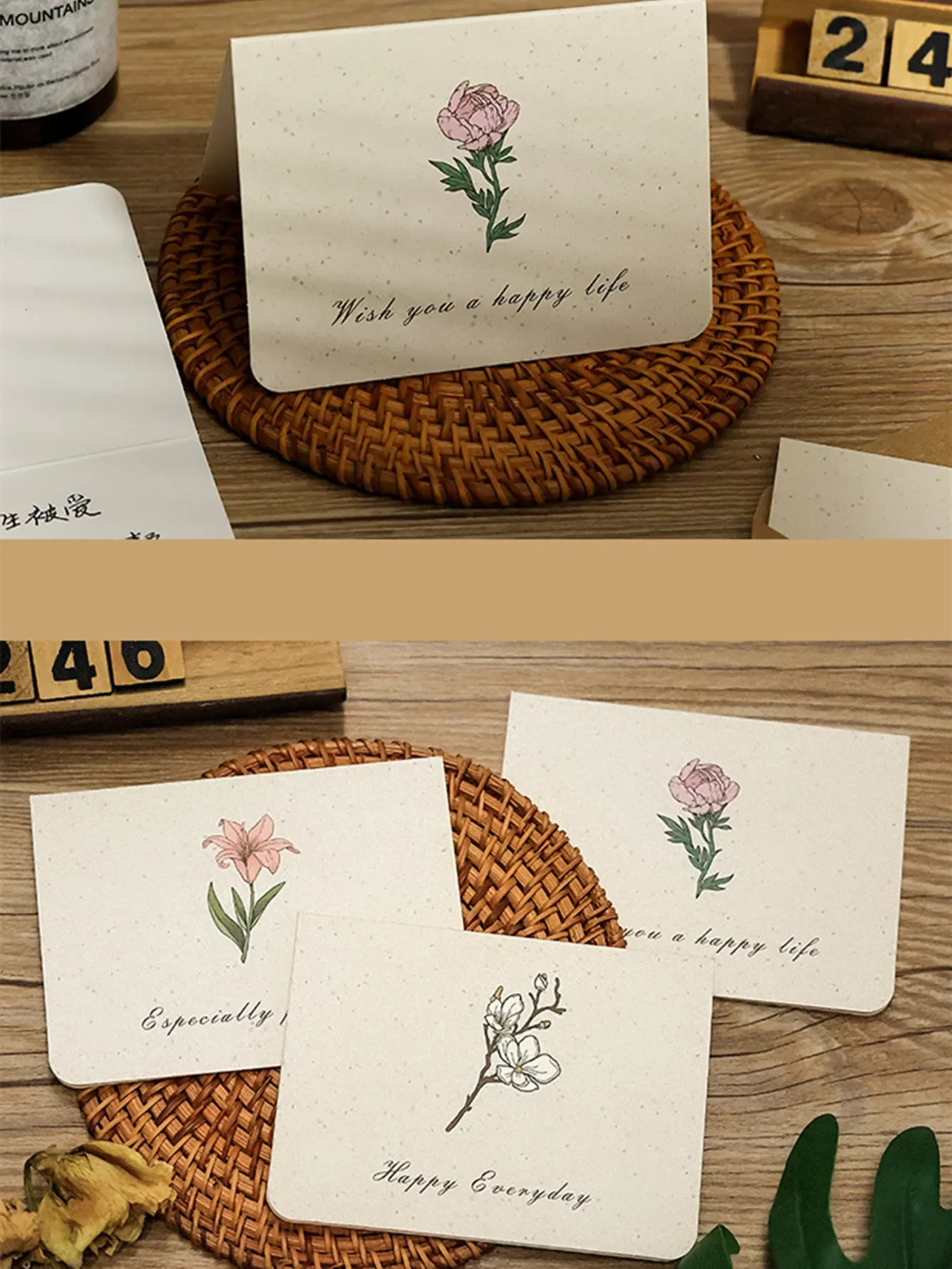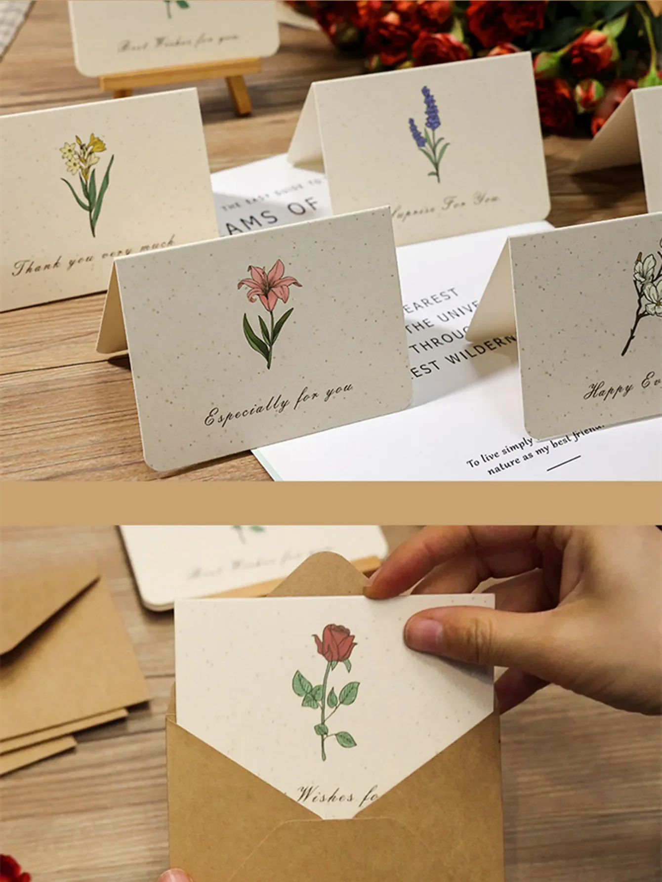 6PCS Vintage Botanical Greeting Cards Simple Cards Valentine's Day Mother's Day Wedding Birthday Message Wishes Thank You Cards