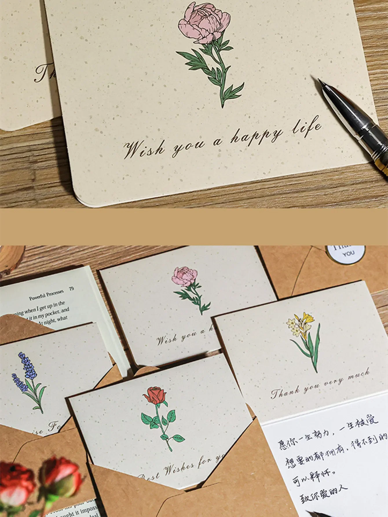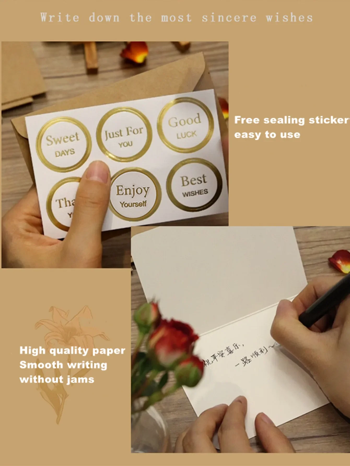 Contains 6 greeting cards 6 envelopes + 6 sealing stickers