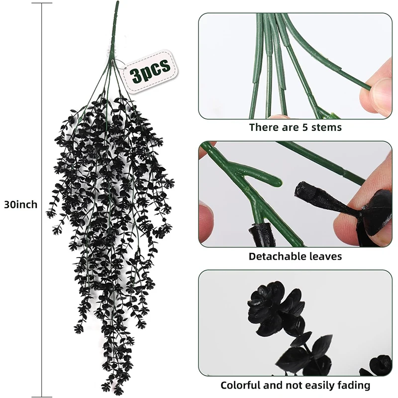70CM Artificial Eucalyptus Plant Hanging Simulation Black Fake Hanging Vine Plants Diy Home Outdoor Halloween Thanksgiving Decor