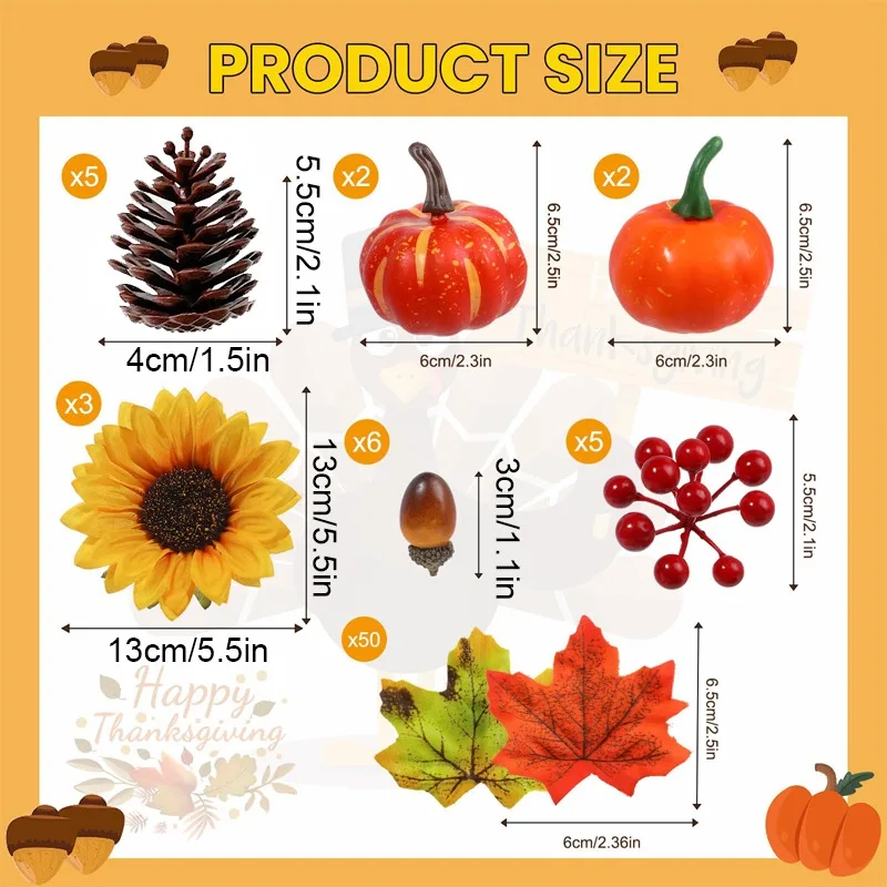 73pcs Fall cake Toppers Thanksgiving cake Decoration Autumn Artificial Pumpkins Sunflowers Maple Leaves Fall Cake Party Decor