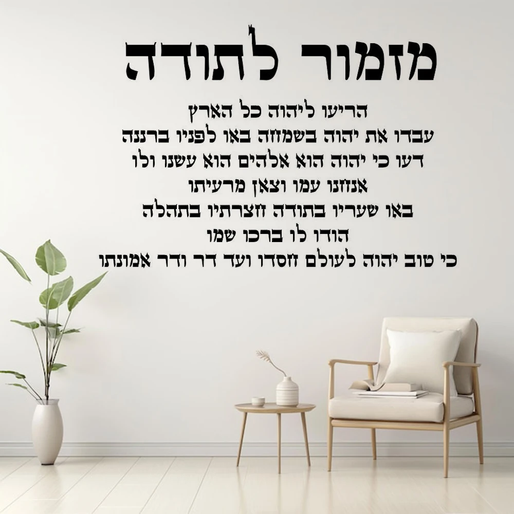 A hymn of thanksgiving Hebrew text vinyl home background wall inspirational language-modern home decoration wall decor X-21