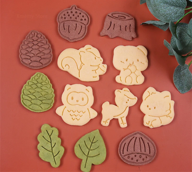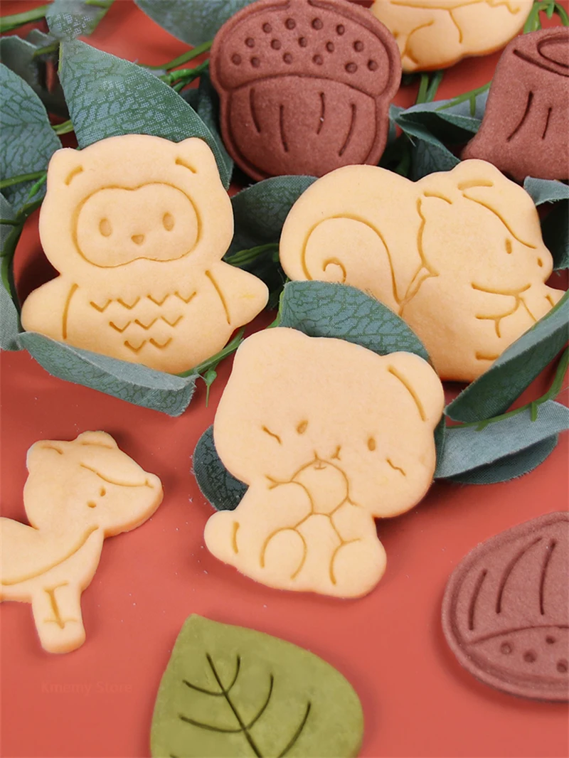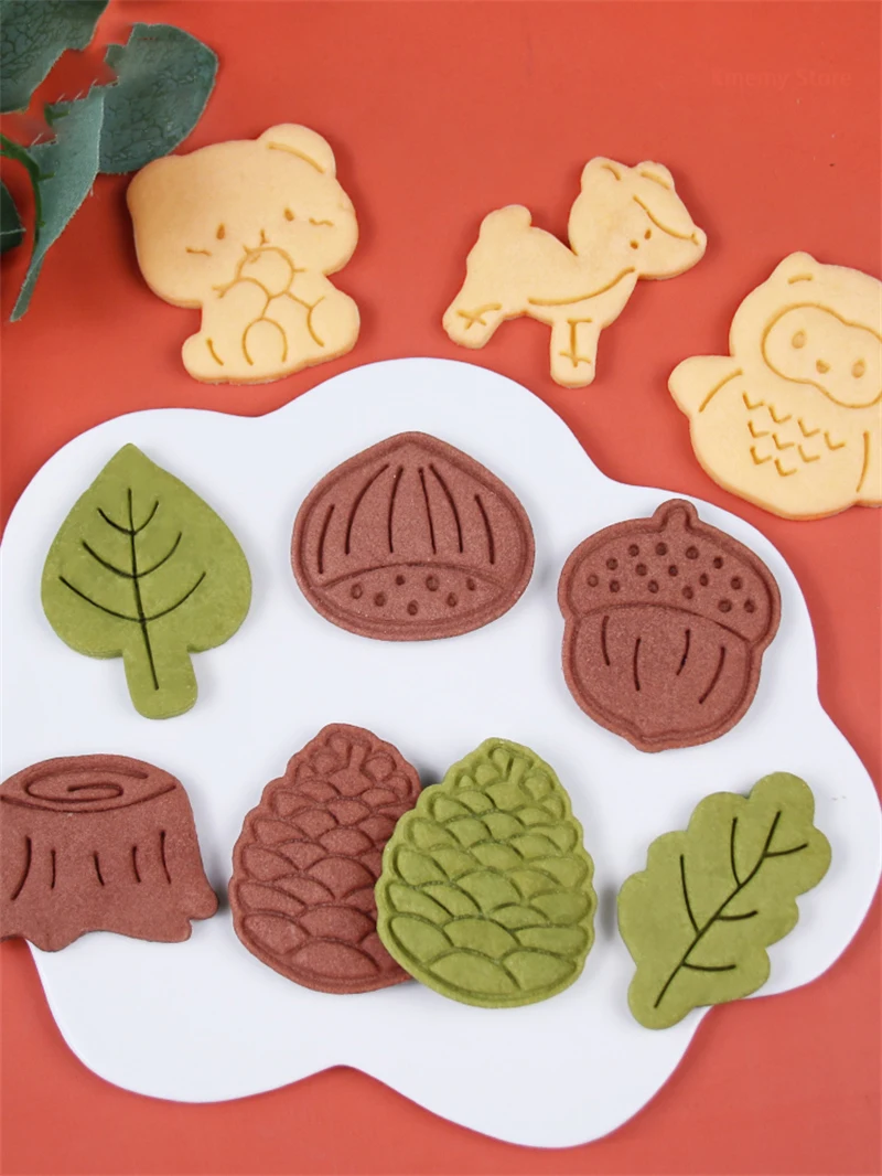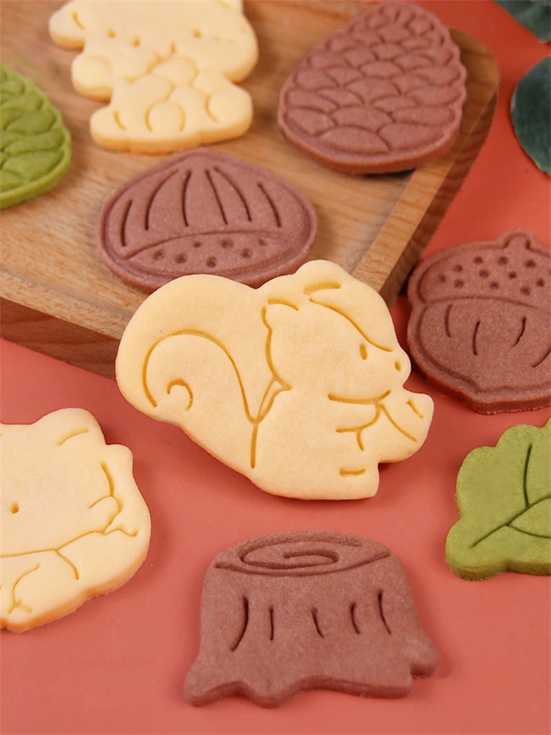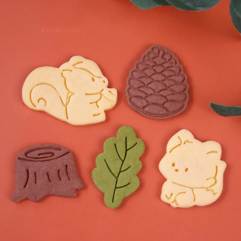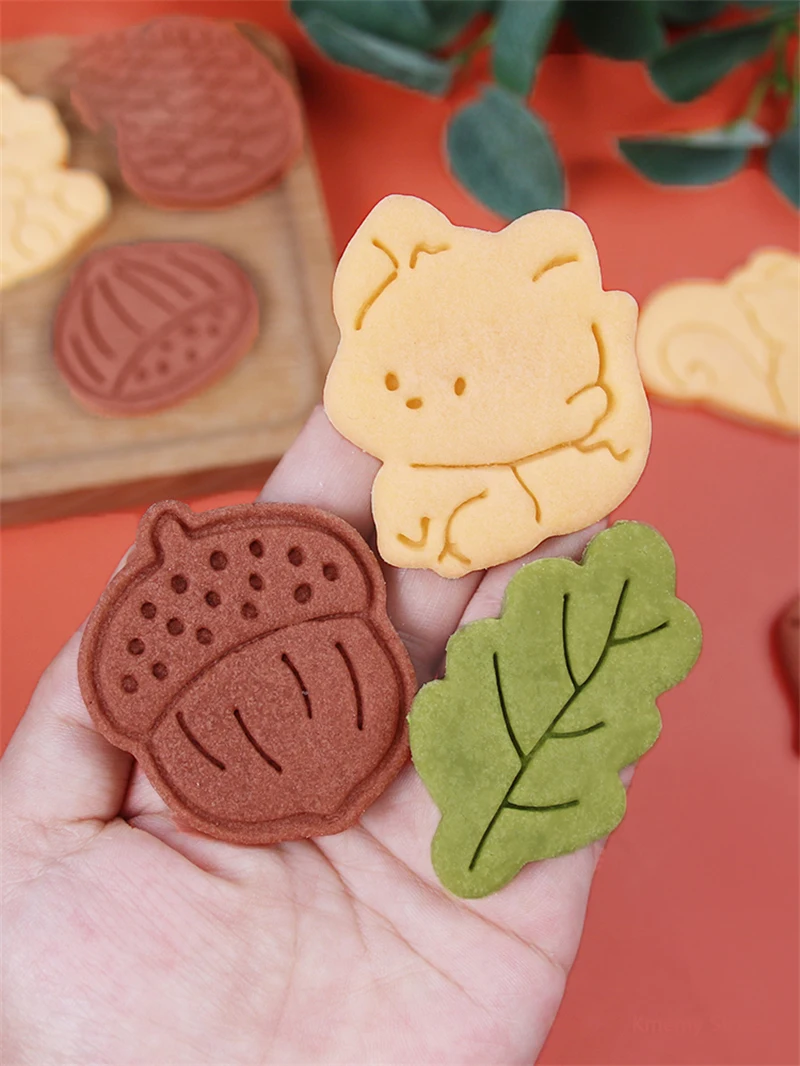Autumn Leaves Squirrel Owl Fox Pattern 3D Biscuit Mould Thanksgiving Chestnuts Pine Cones Fondant Cookie Cutter Mold Baking Tool