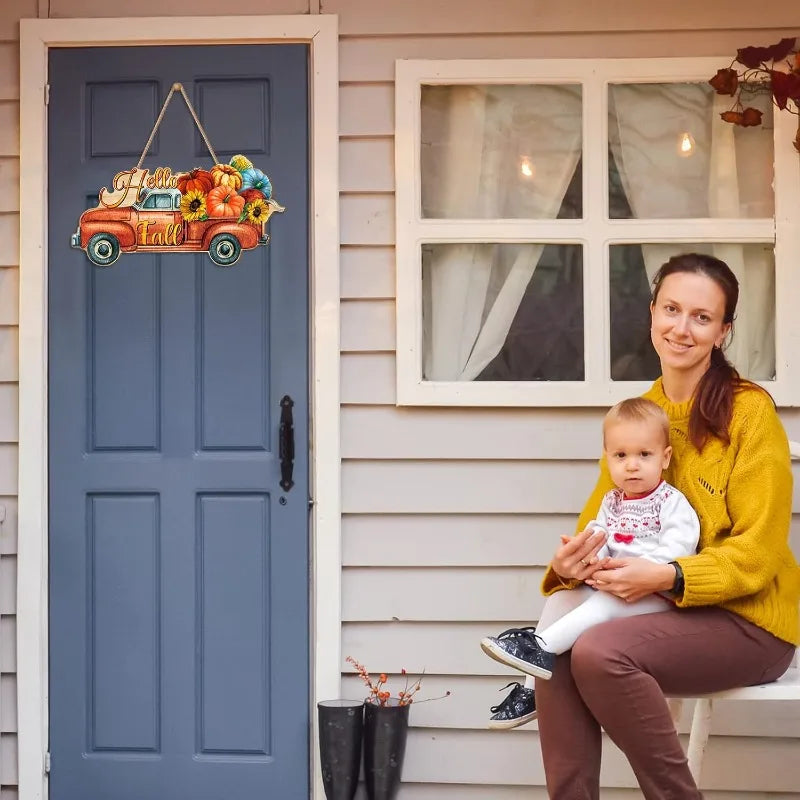 Autumn Pumpkin Welcome Sign - Rustic Wood 'Hello Fall' Hanging Decoration for Thanksgiving, Porch, Home Wall Indoor/Outdoor