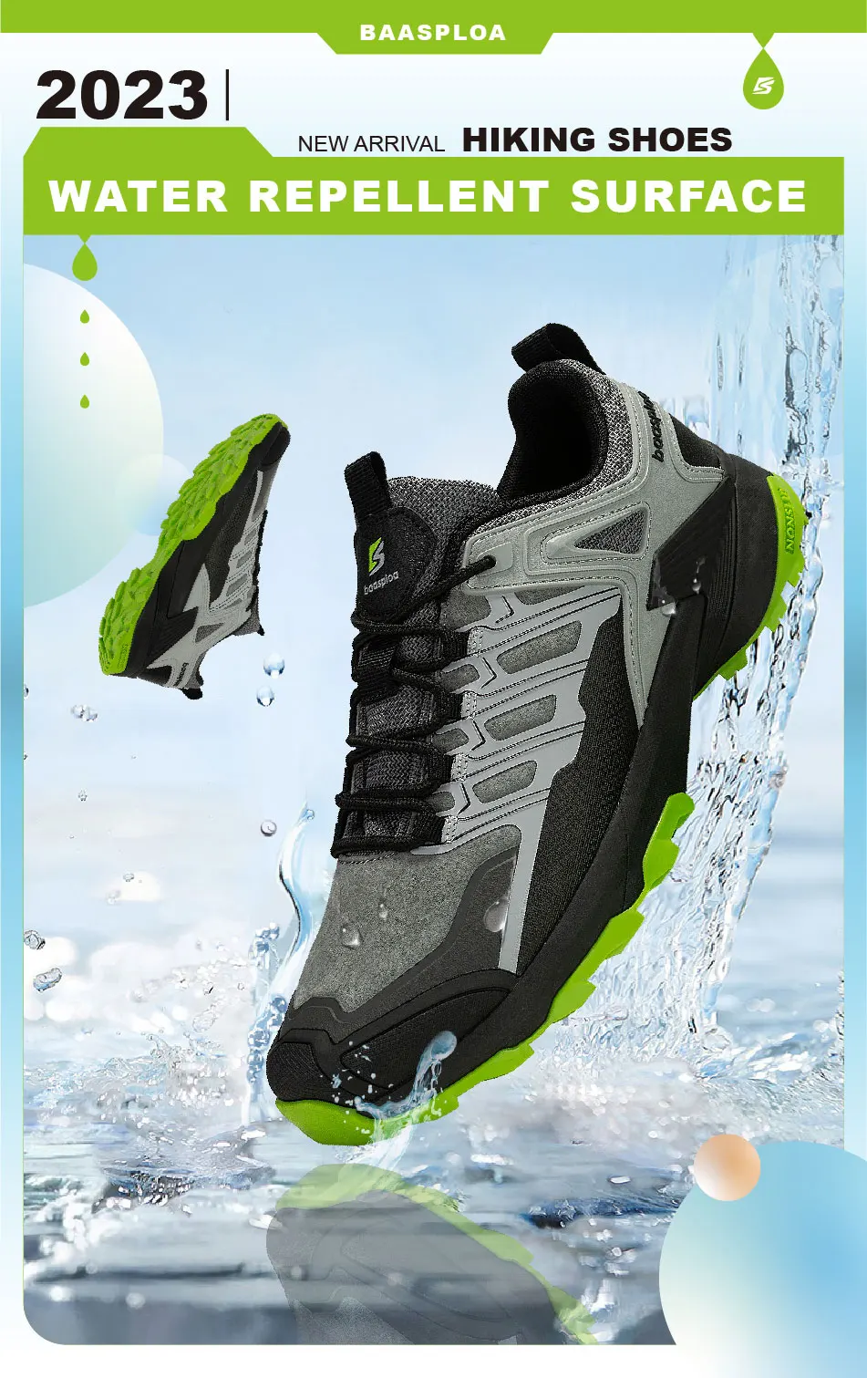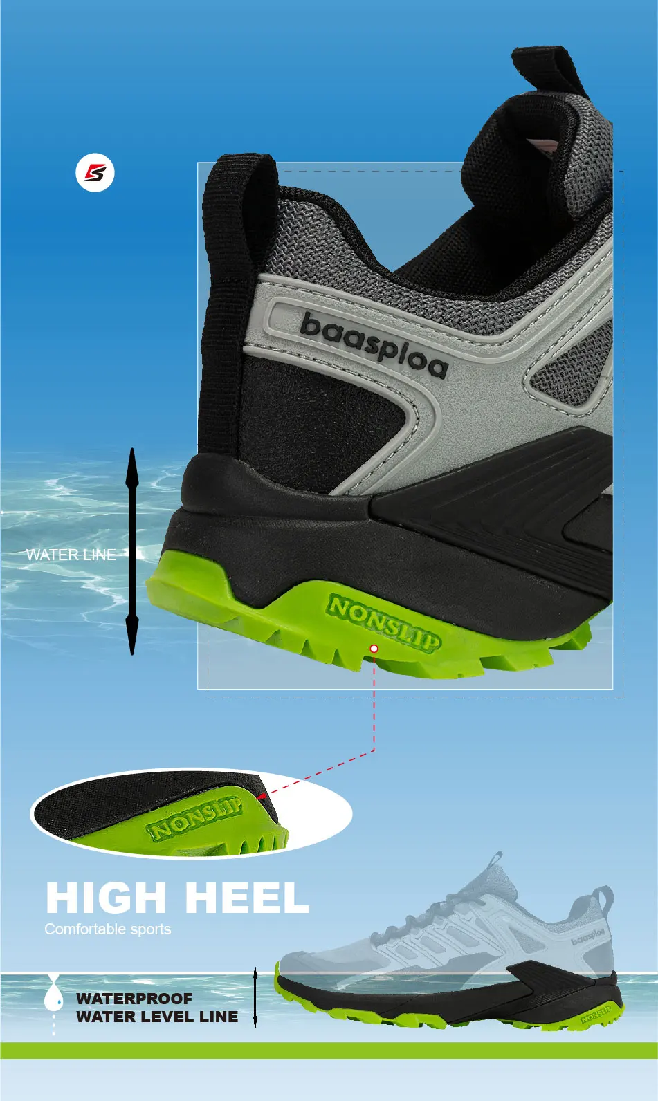 Baasploa Men Hiking Shoes Waterproof Outdoor Sneakers for Men Casual Sneakers Anti-Skid Wear-Resistant Male Shoes New Fashion