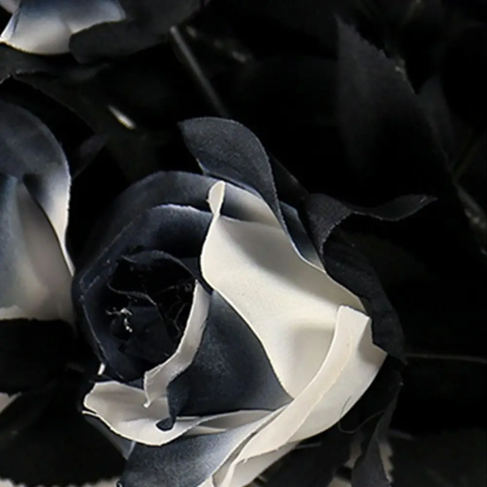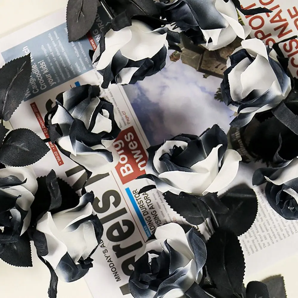Black White Halloween Artificial Rose Flowers Soft Silk Real Touch Faux Flowers Non-Fading Gothic Simulation Flowers