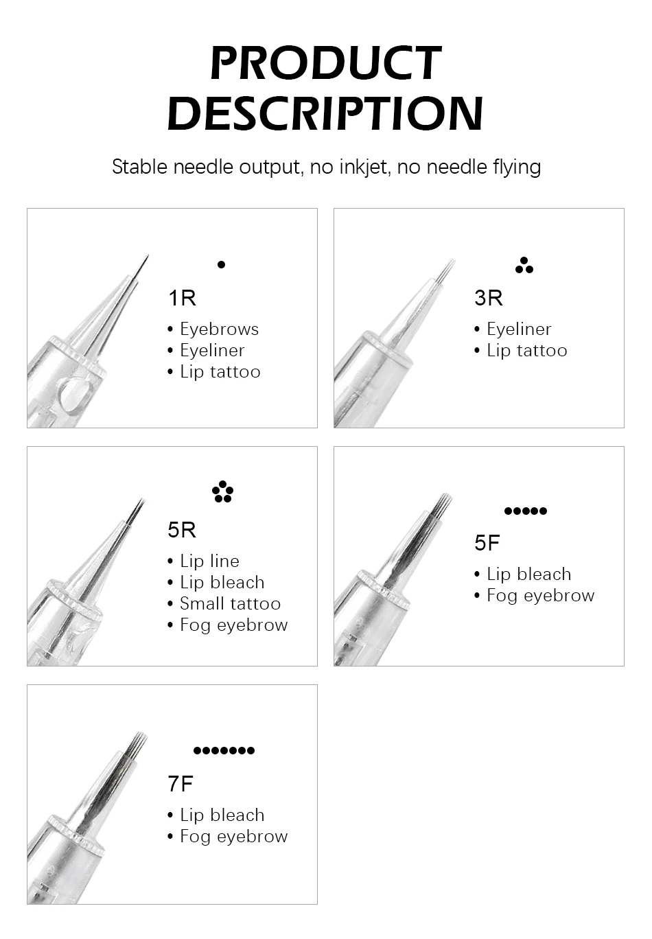Borala 20Pcs Tattoo Needle Microblading Piercing Needles Pen Permanent Eyebrow Lip Makeup Cosmetics Tattoo Machine Accessories