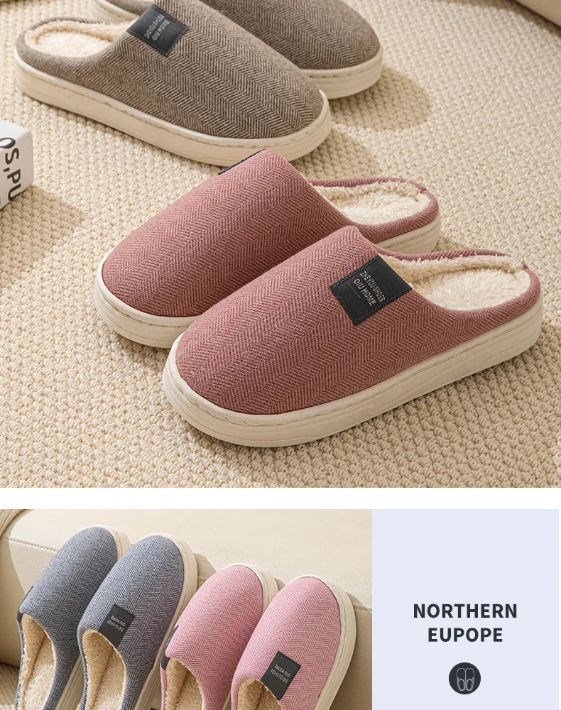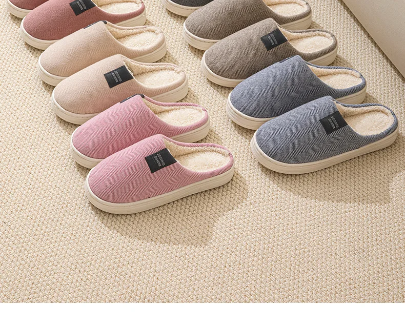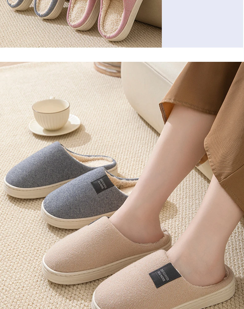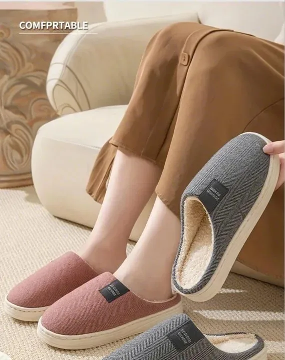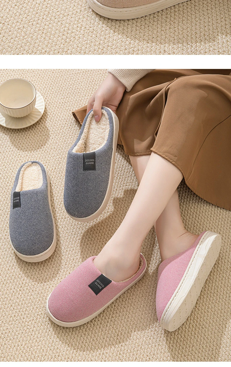 Slippers For Autumn Winter Thick Sole Men's Cotton Slippers Indoor Warm Antislip Shoes Couple's Slides