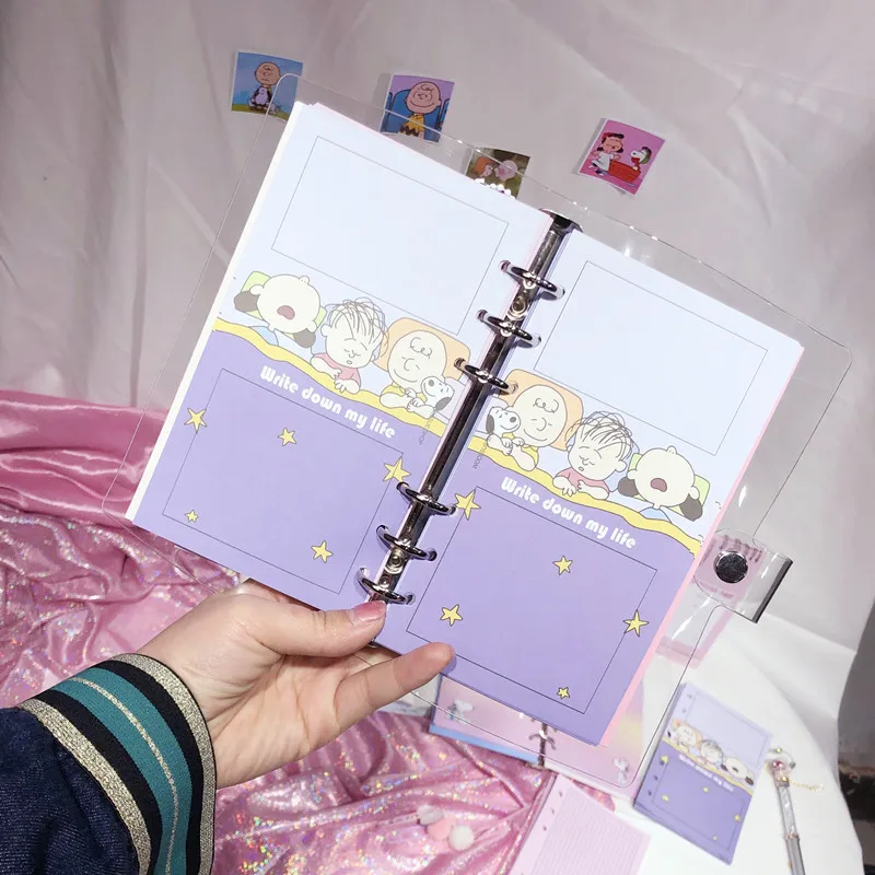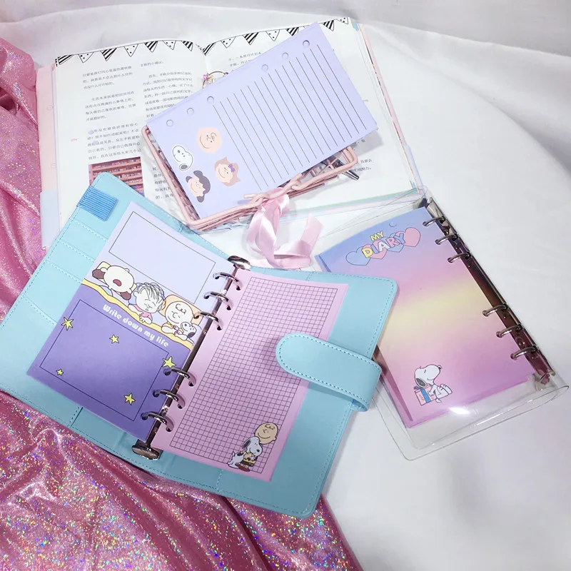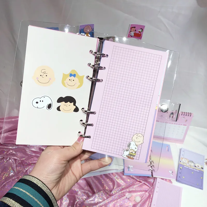 Snoopy Cartoon A6 Loose Leaf Notebook Weekly Monthly Planner Diary Sketchbook Student Journal Notebooks For School Stationery