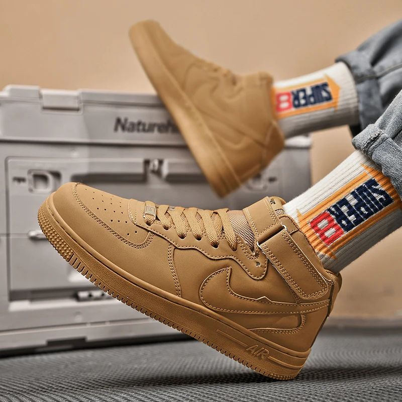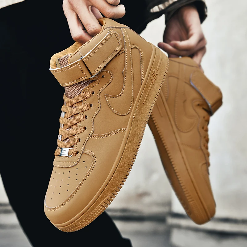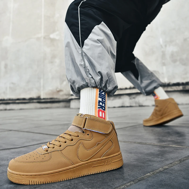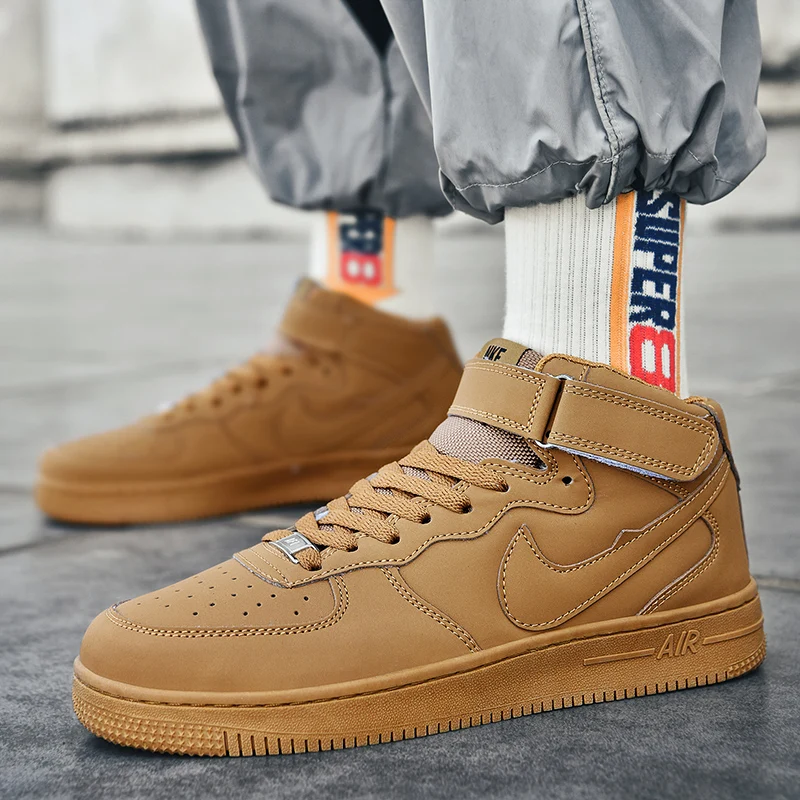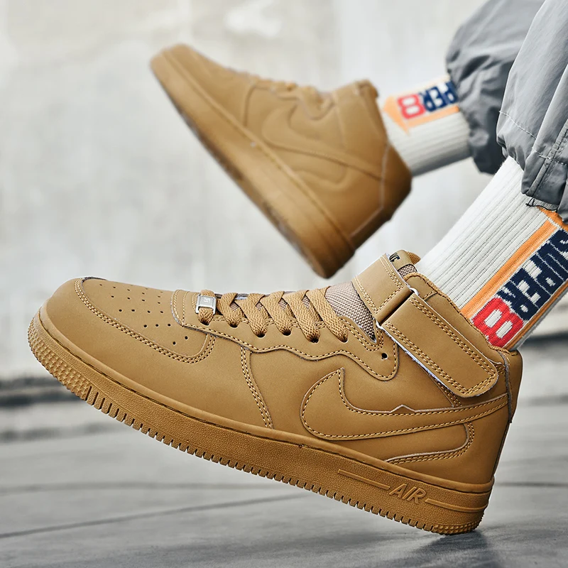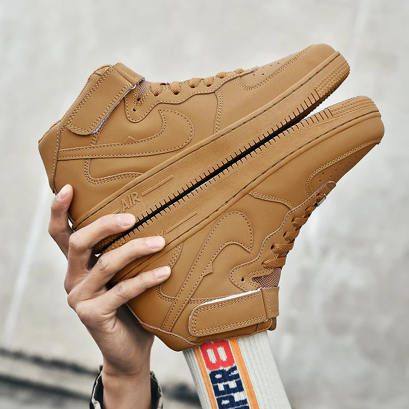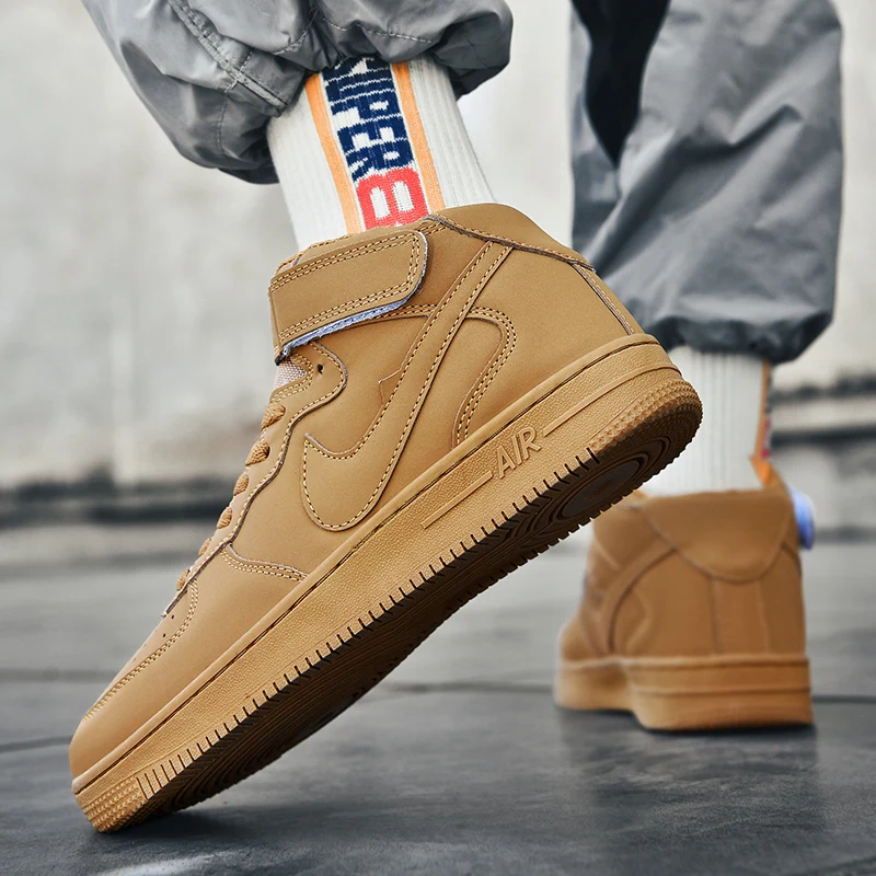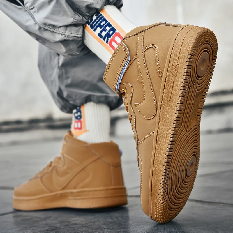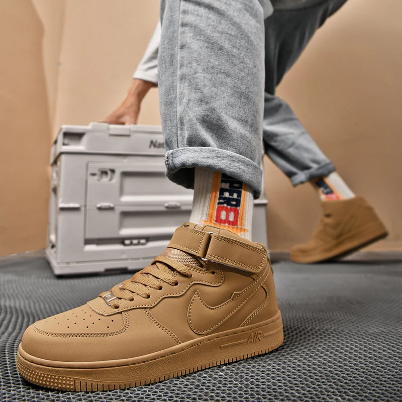 Sports shoes for teenagers, outdoor fashion trend, high-end high-quality leather, high top classic, hot selling wheat color
