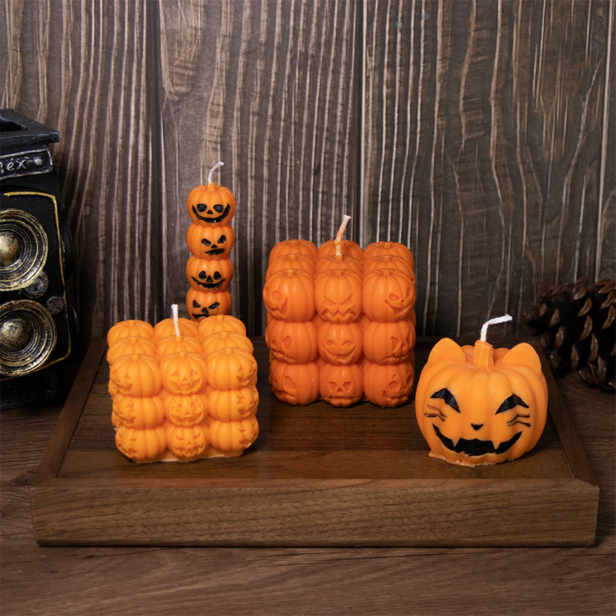 Square Pumpkin Candle Silicone Molds 3D Skull Pillar Candle Mold for DIY Ghost Pumpkin Epoxy Resin Halloween Party Home Decor