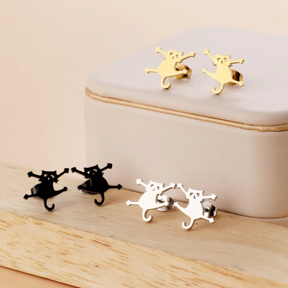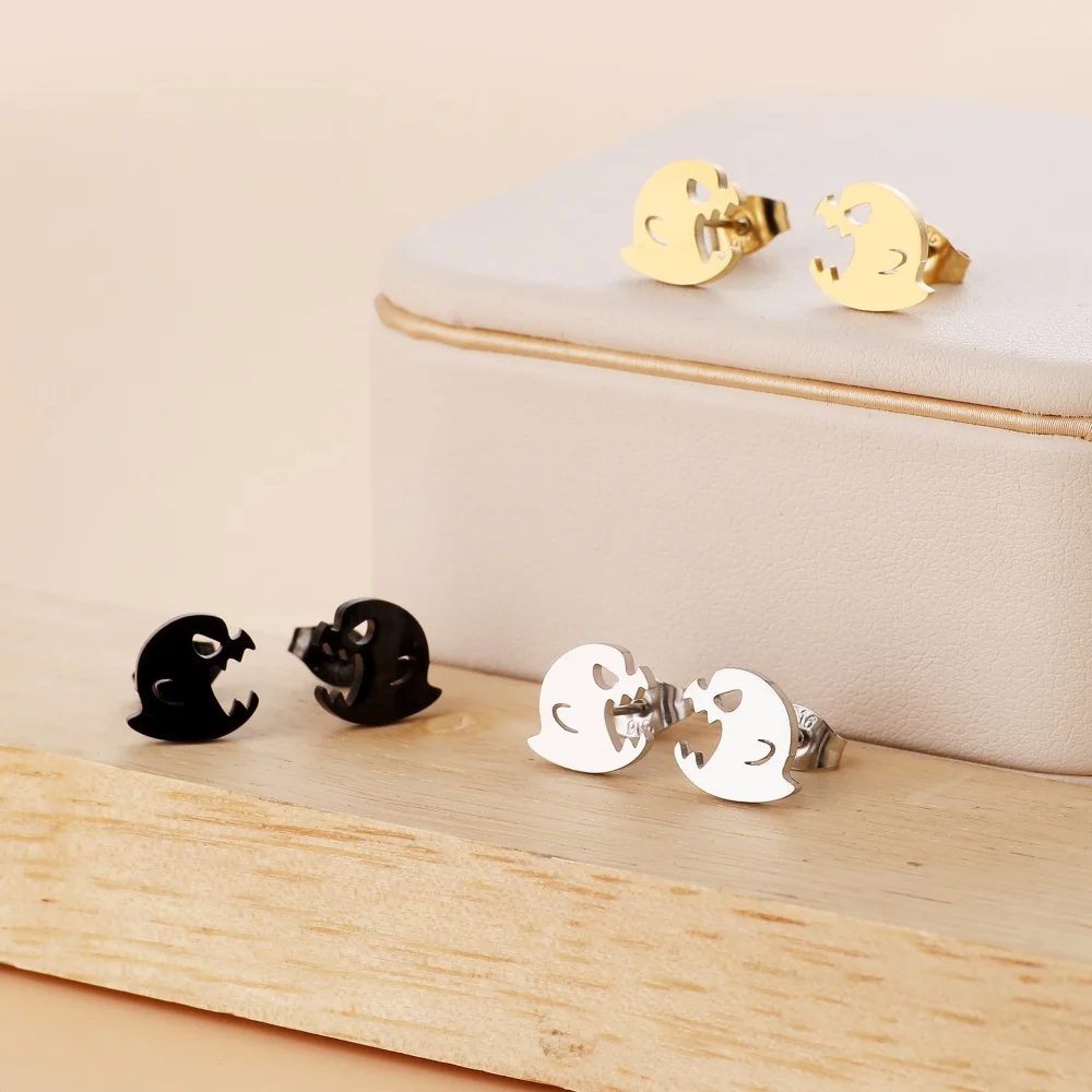Stainless Steel Halloween Ghost Cat Stud Earrings For Women Girls Gold Color Waterproof Fashion Ear Party Jewelry Gift Wholesale