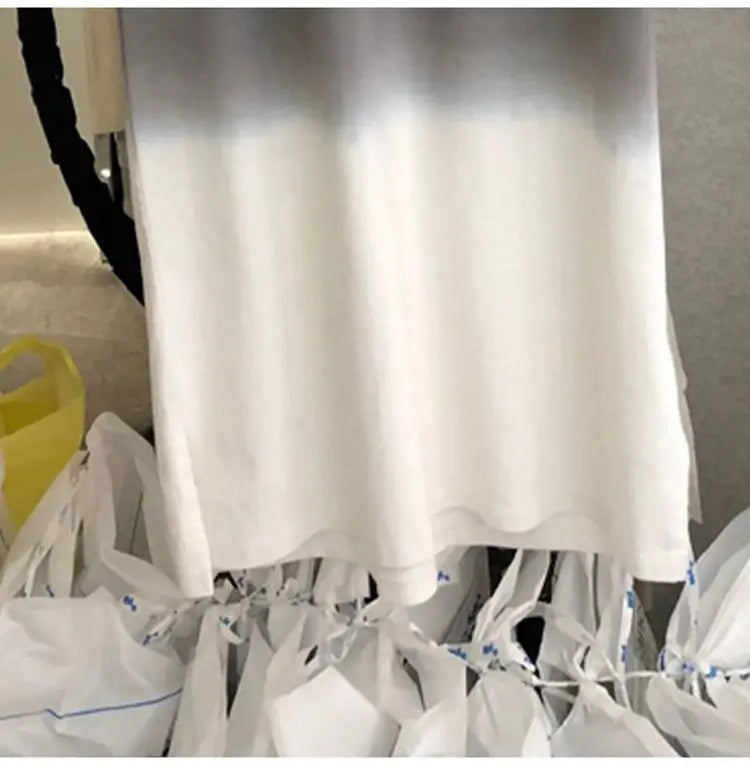 Street Casual Gradient Loose T Shirt Dress Summer New Short Sleeve O-Neck All-match Midi Dress Fashion Trend Women Clothing
