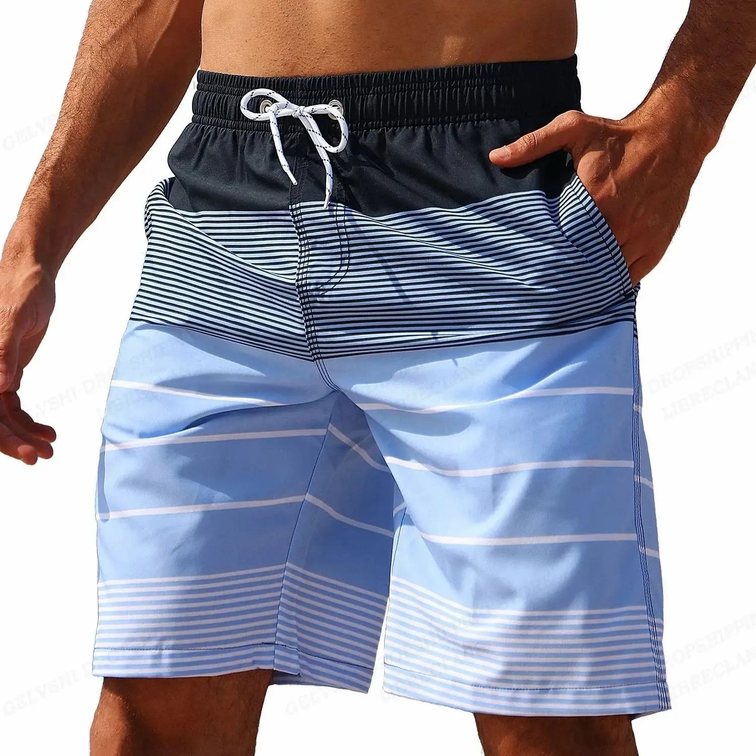 Striped Beach Shorts Men Fashion Swimwear Board Shorts Trunk Gym Fitness Pants Men's Briefs Swimsuit Kids Beachwear Short Boy