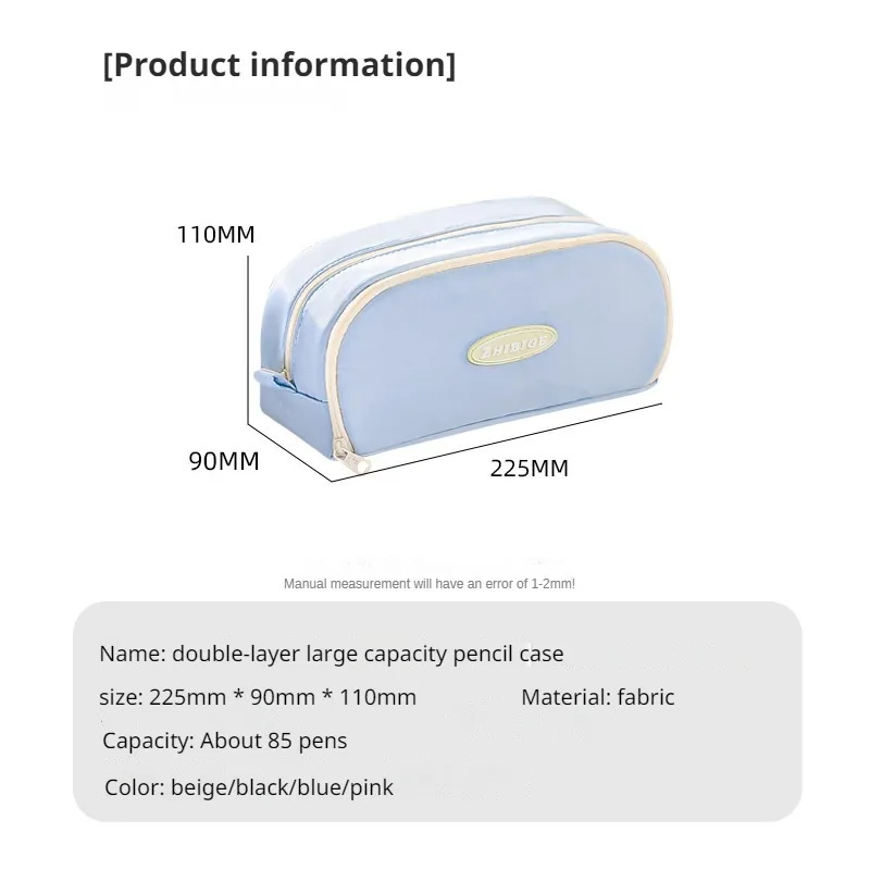 1. A 2-layer high-capacity pencil case that can hold up to approximately 85 pens, made of durable fabric material!