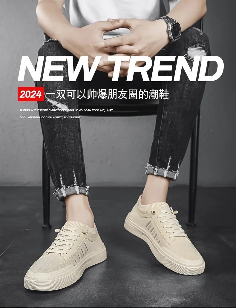 Summer Casual Sneakers for Men Breathable Loafers Lightweight Round Head Solid Colour Non-slip Flats Zapatillas Para Hombres