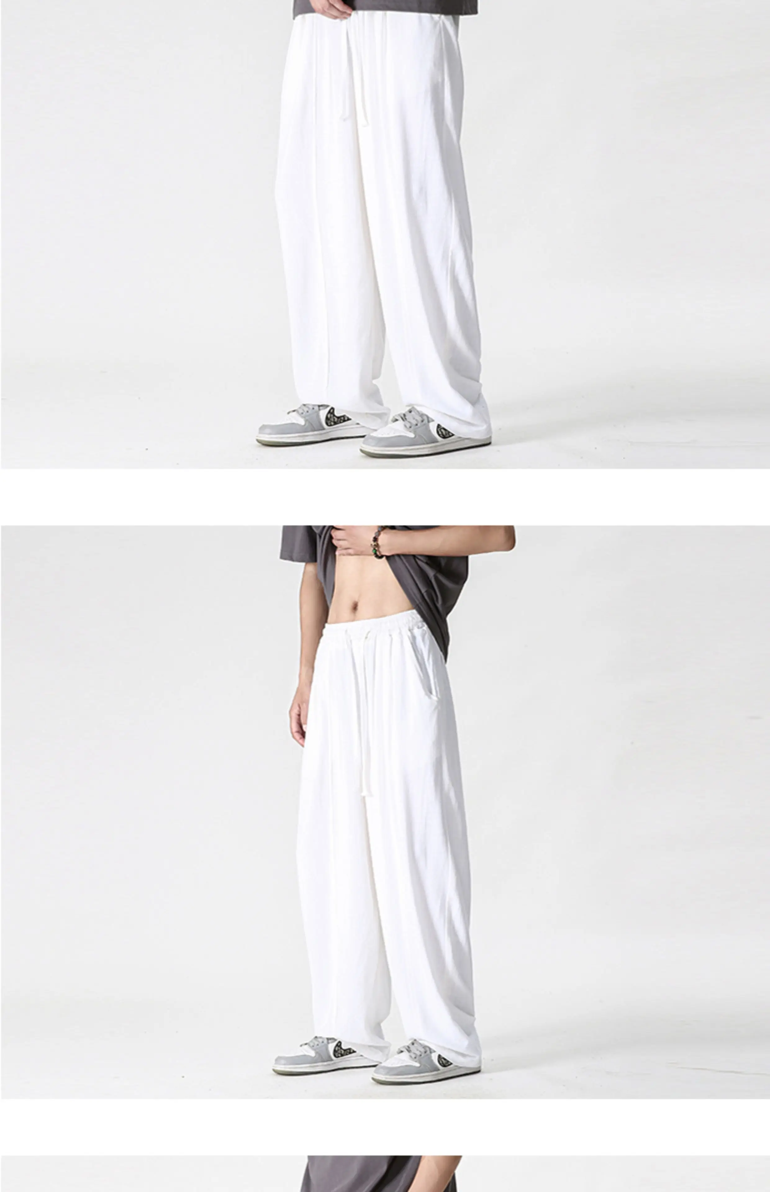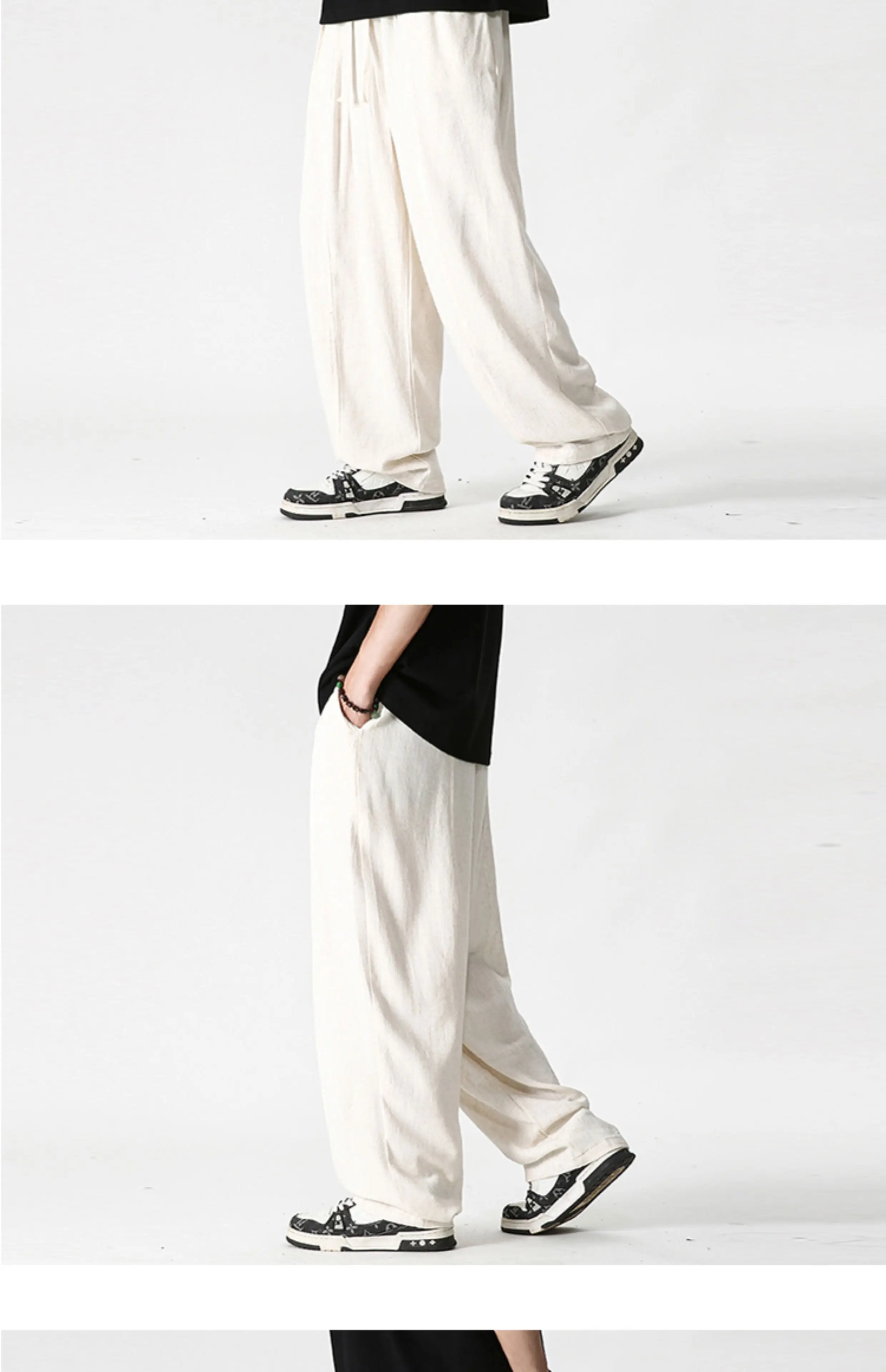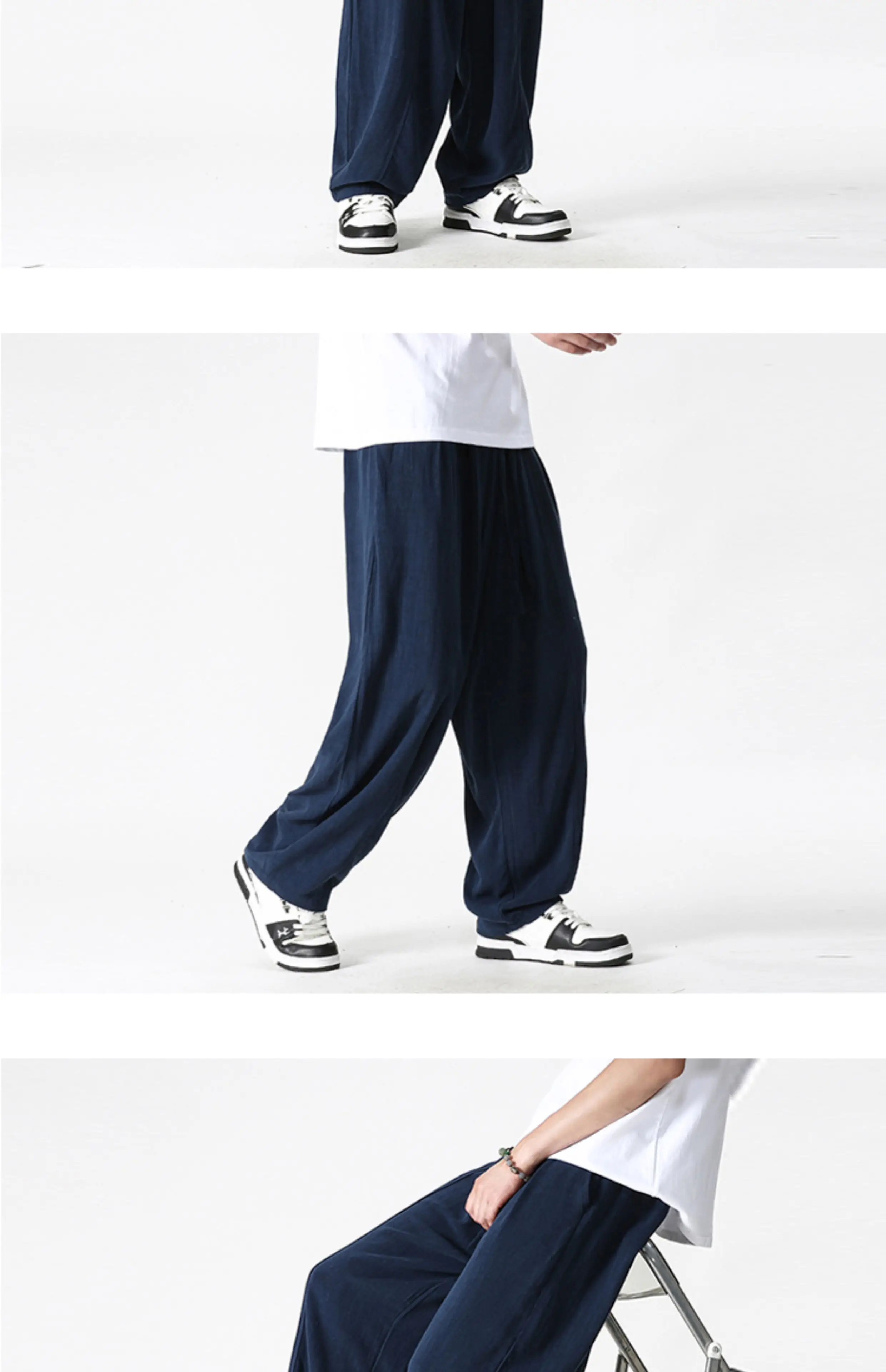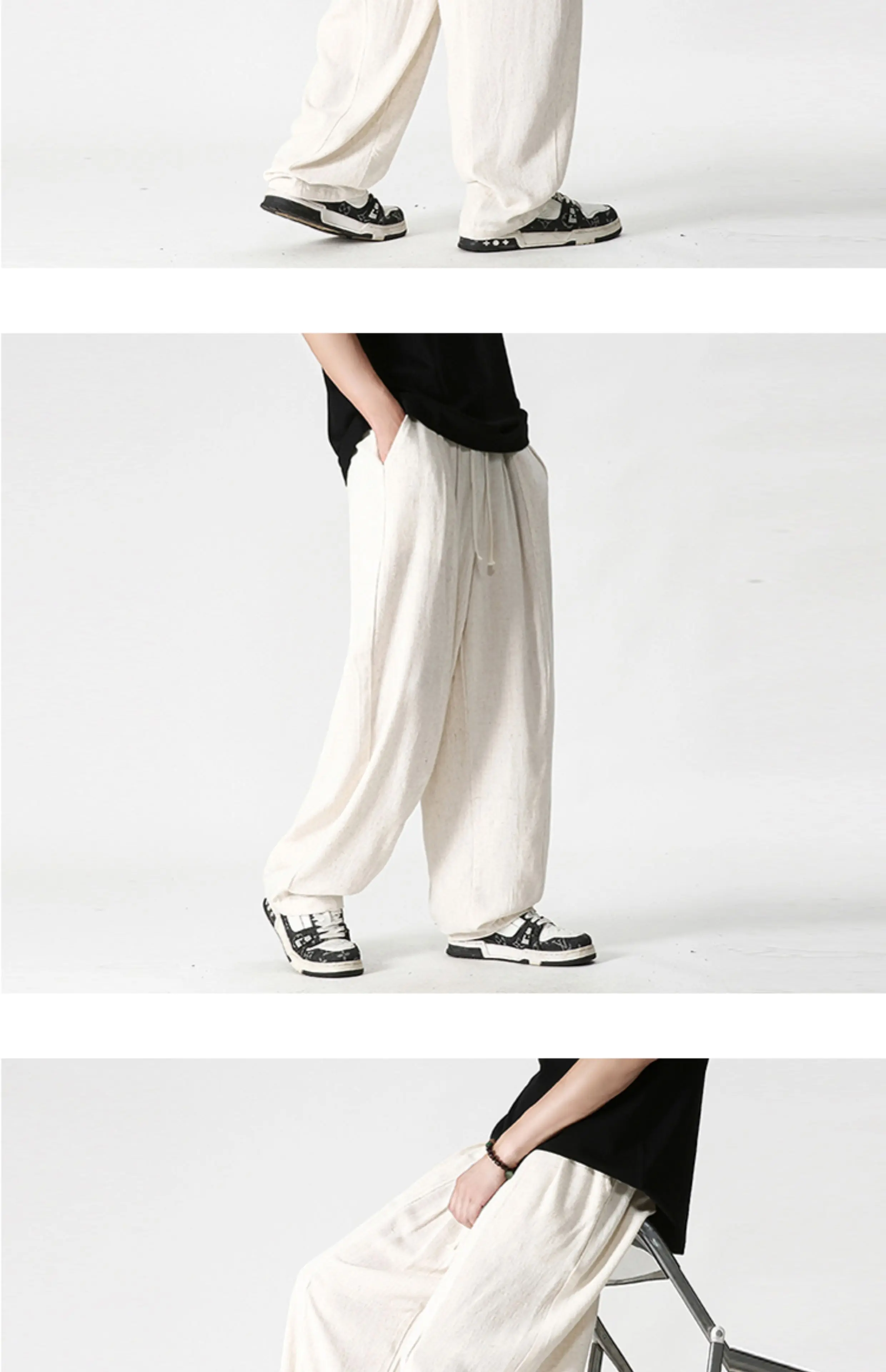 Summer Wide Leg Pants Men's Cotton Linen Harun Loose Pants Men Casual Elastic Waist Circumference Lantern Trousers Plus Size 5XL