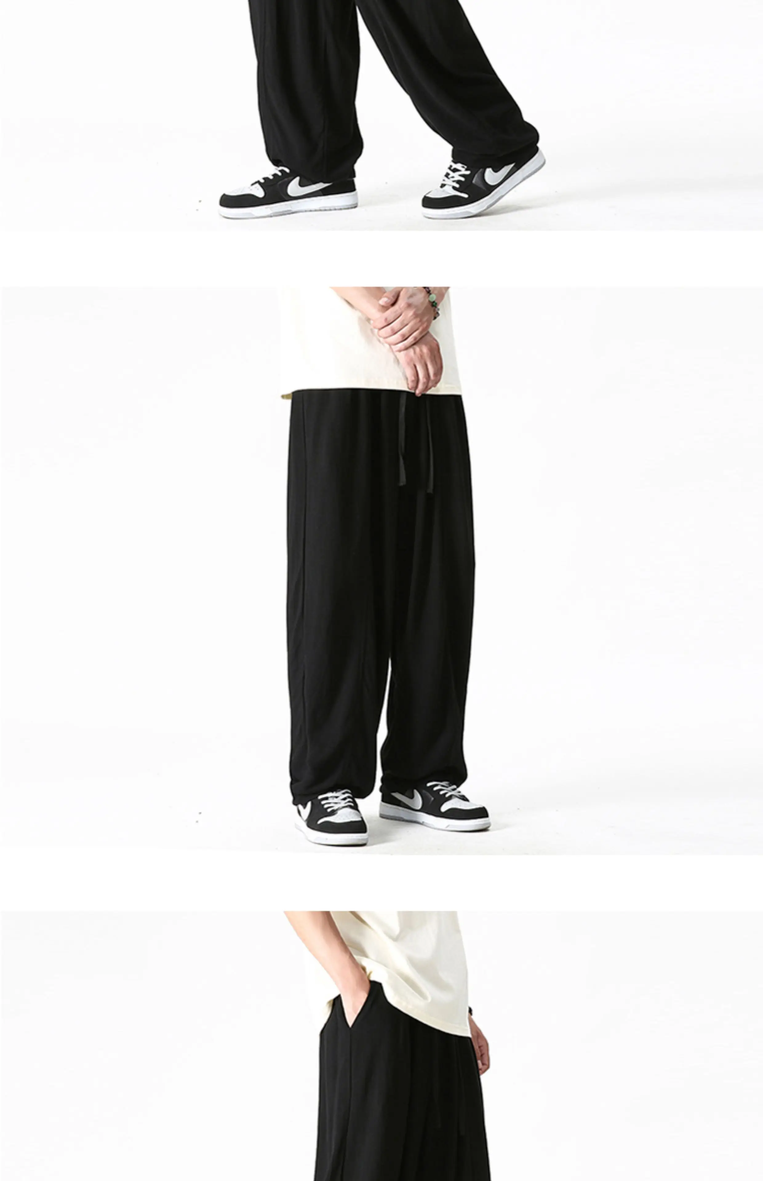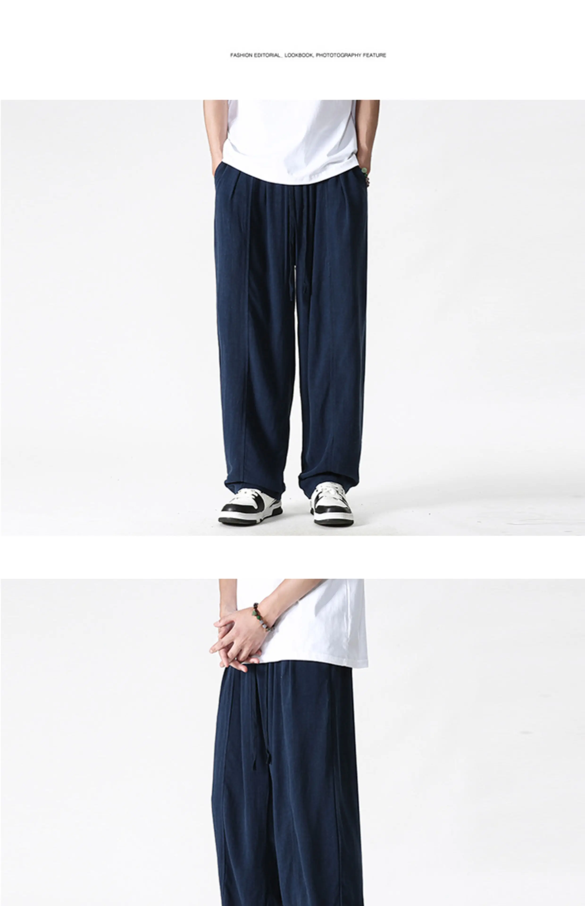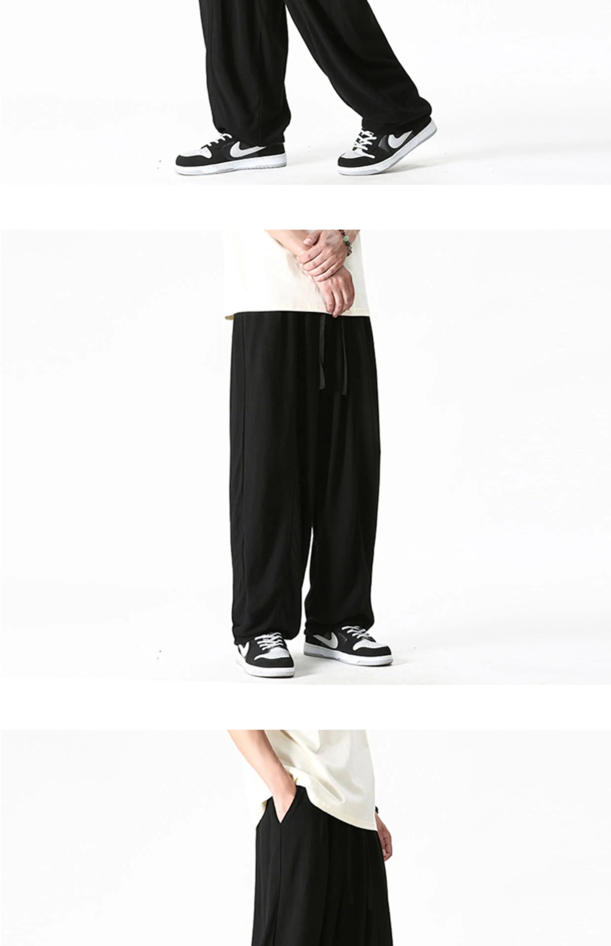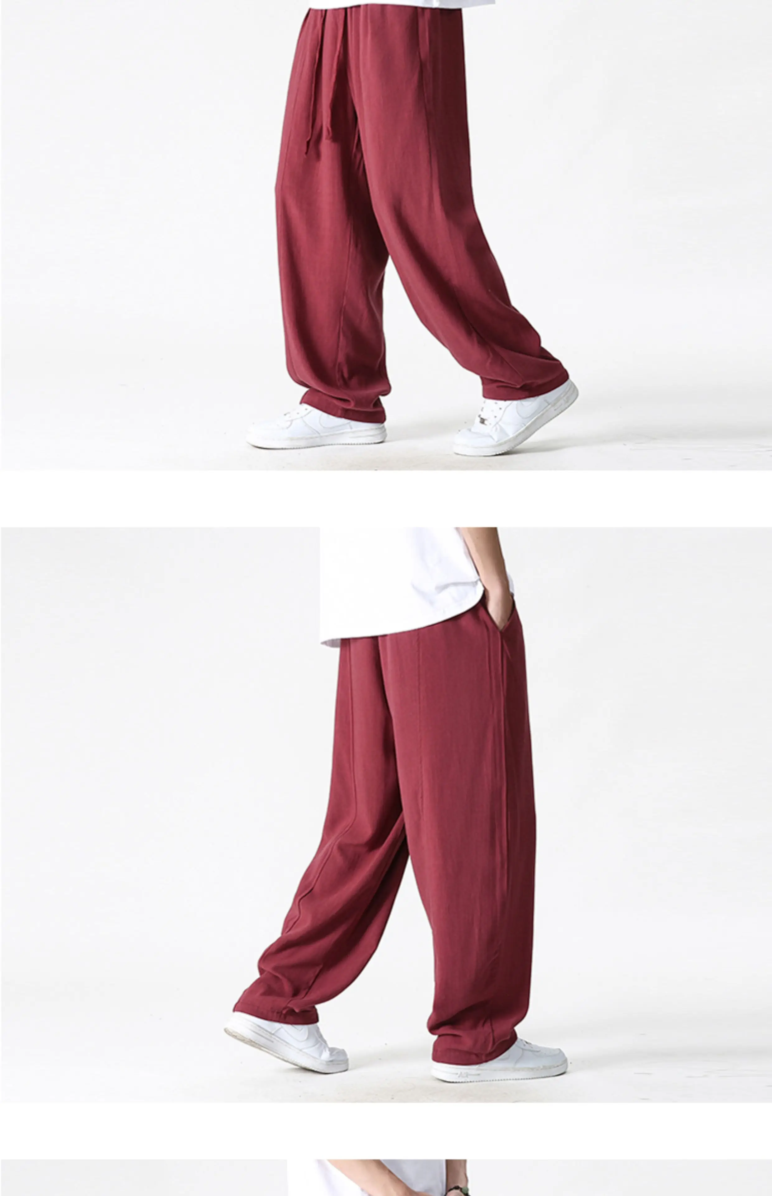 Summer Wide Leg Pants Men's Cotton Linen Harun Loose Pants Men Casual Elastic Waist Circumference Lantern Trousers Plus Size 5XL