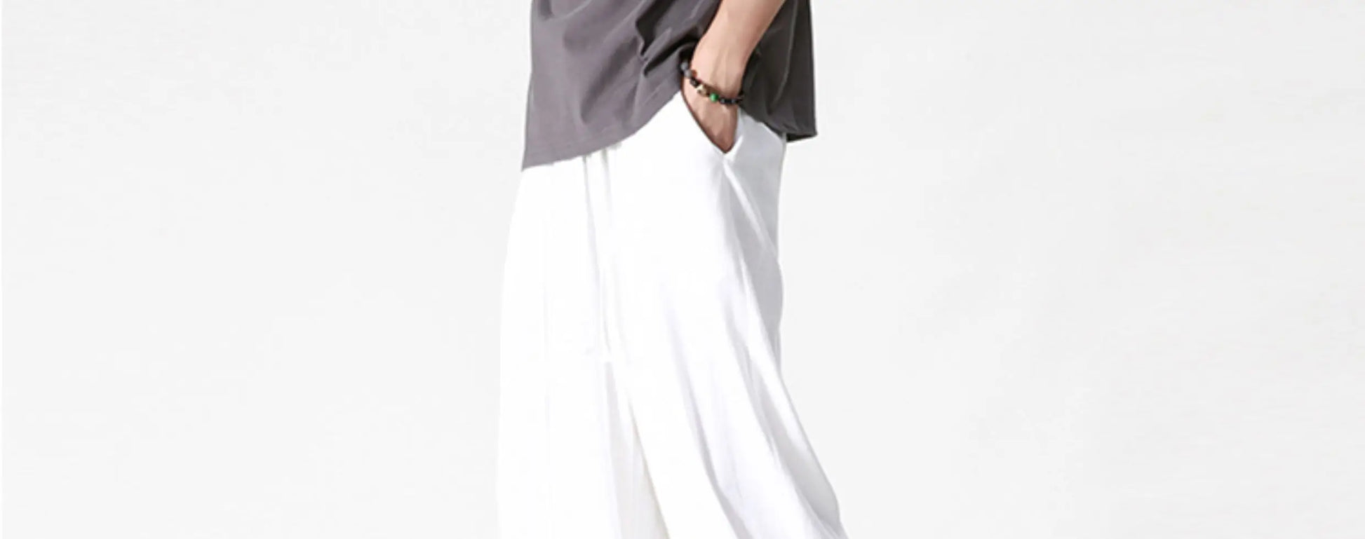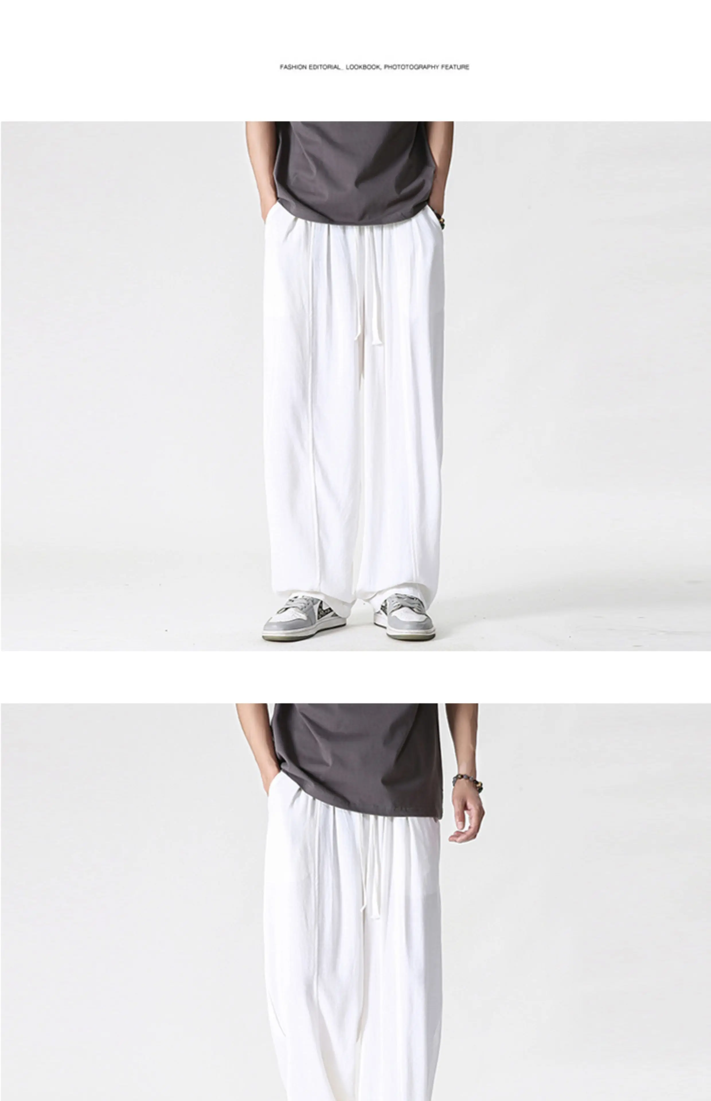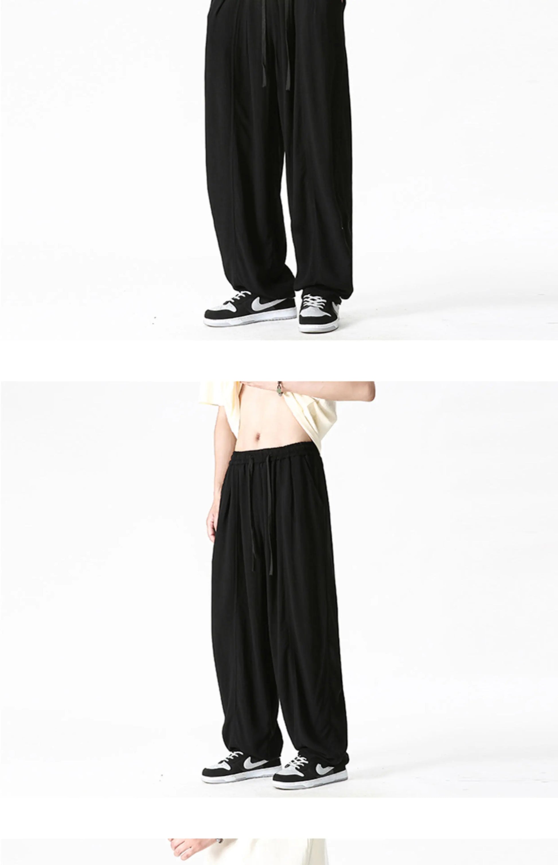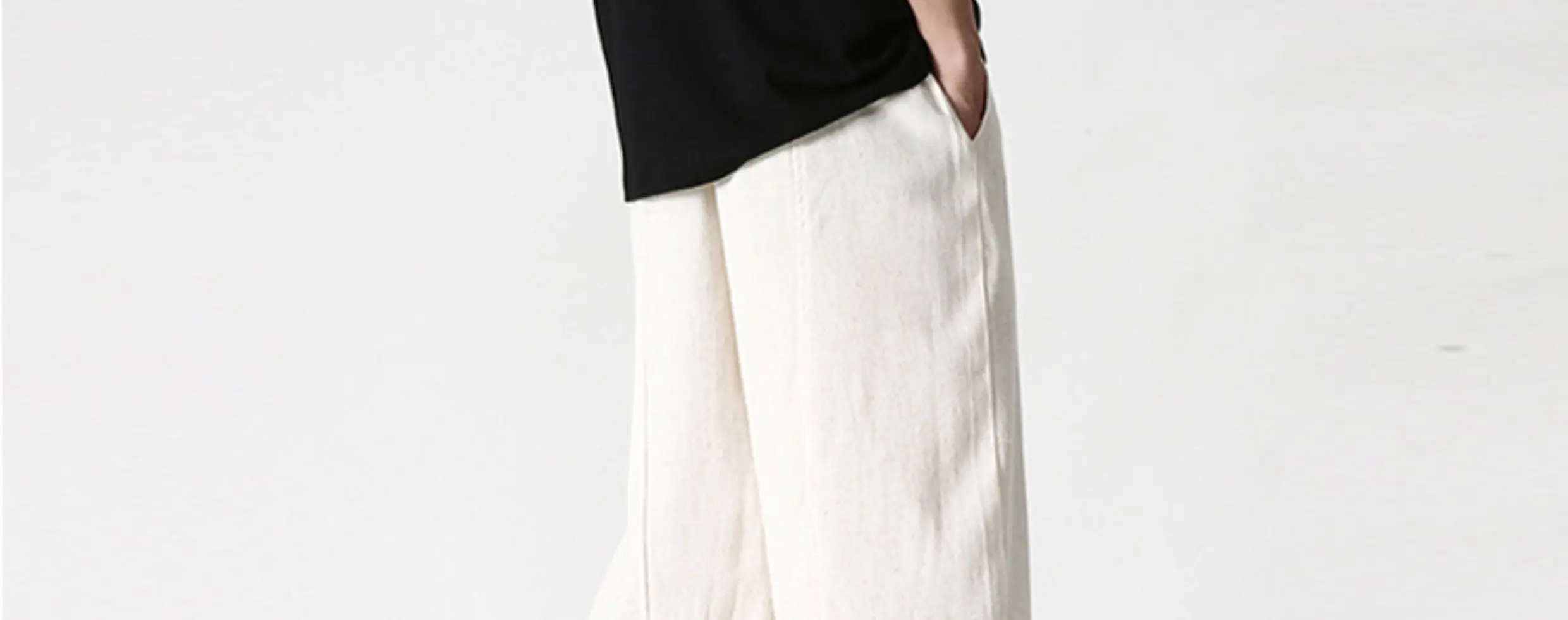 Summer Wide Leg Pants Men's Cotton Linen Harun Loose Pants Men Casual Elastic Waist Circumference Lantern Trousers Plus Size 5XL