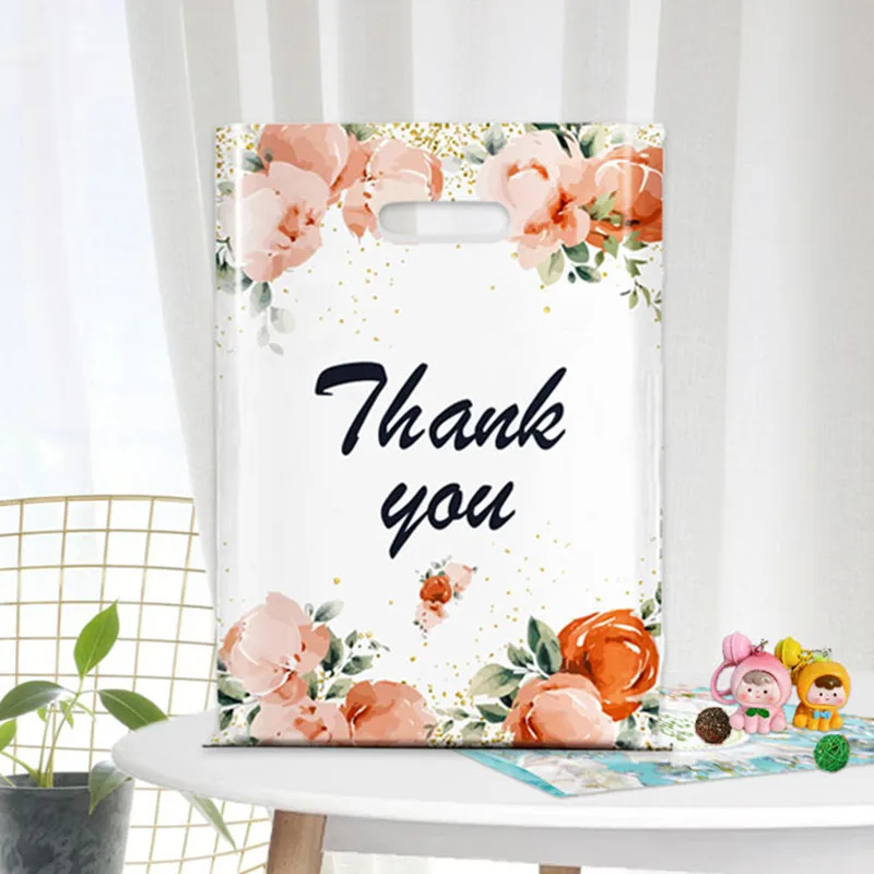 Thank You Flower Gift Bags For Small Business Plastic Shopping Bag Wedding Birthday Present Package Storage With Handle 10PCS
