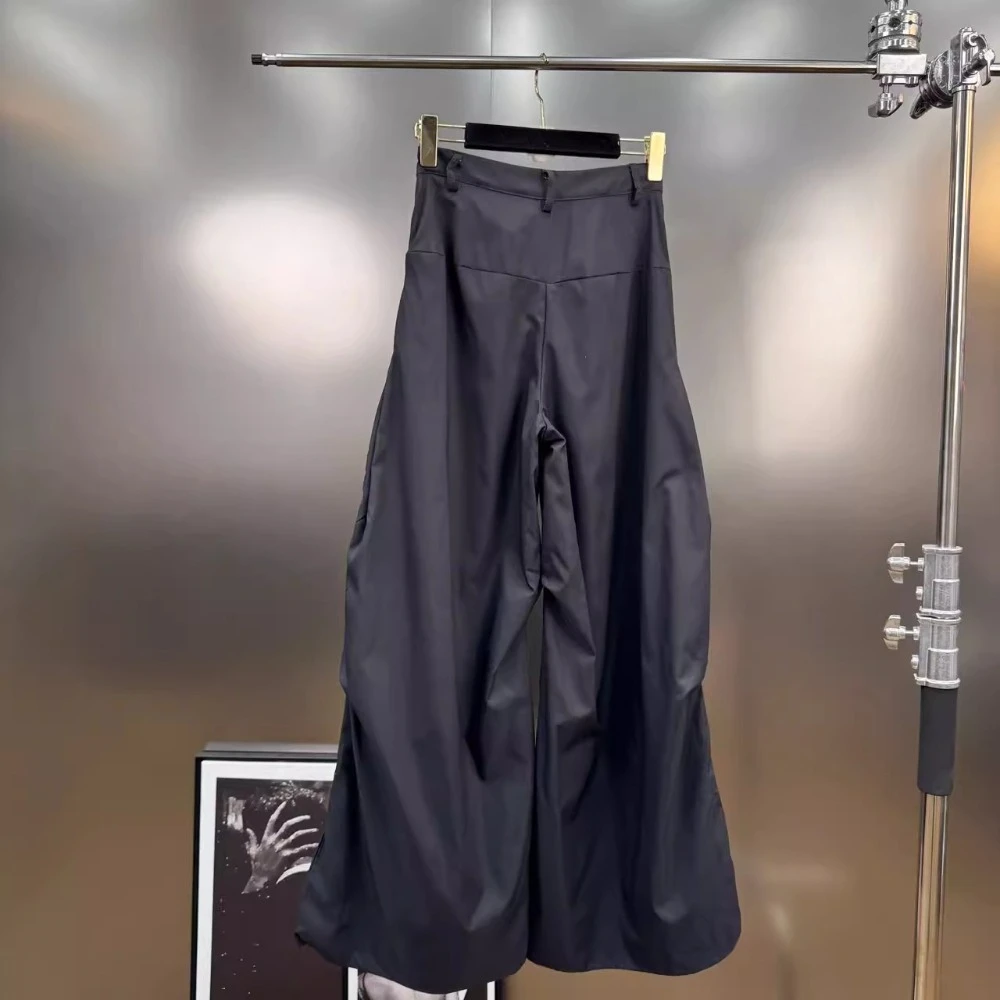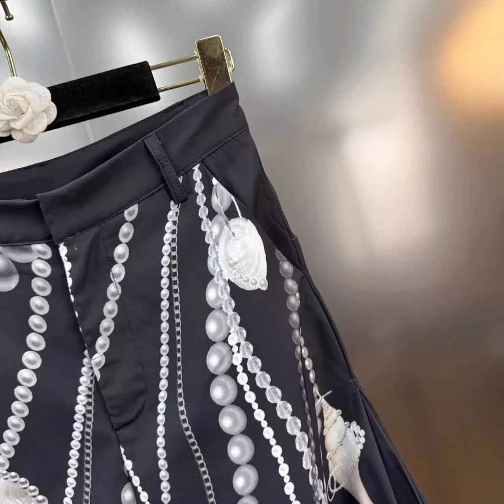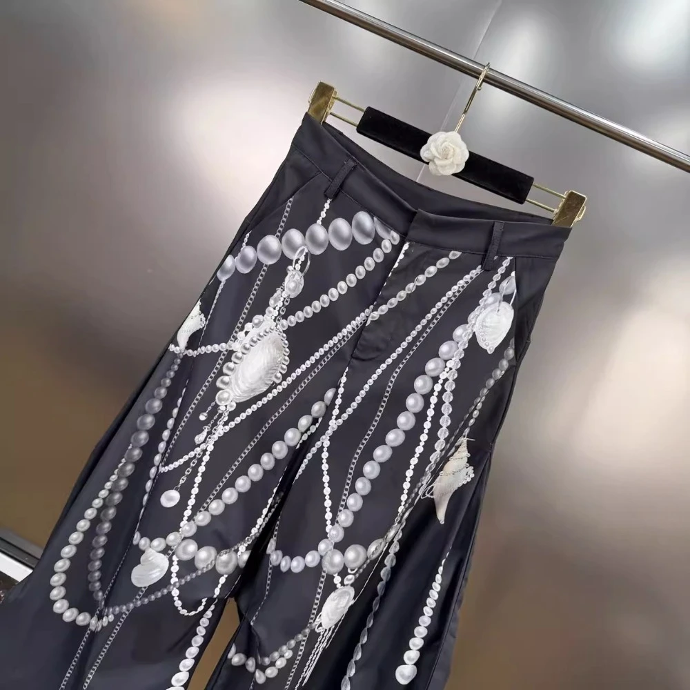 VGH Hit Color Pearl Printed Wide Leg Pant for Women High Waist Spliced Pockets American Streetwear Floor Length Trousers Female