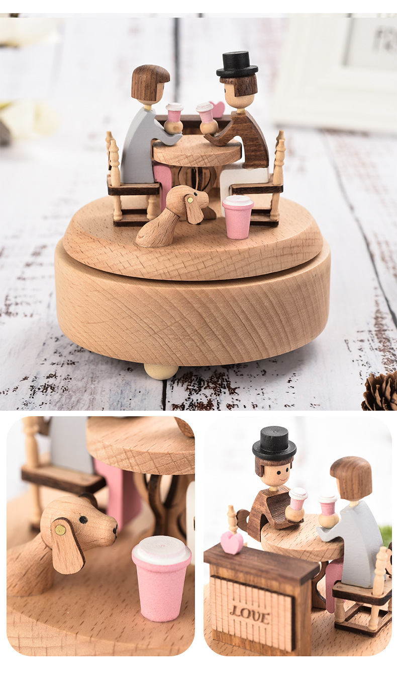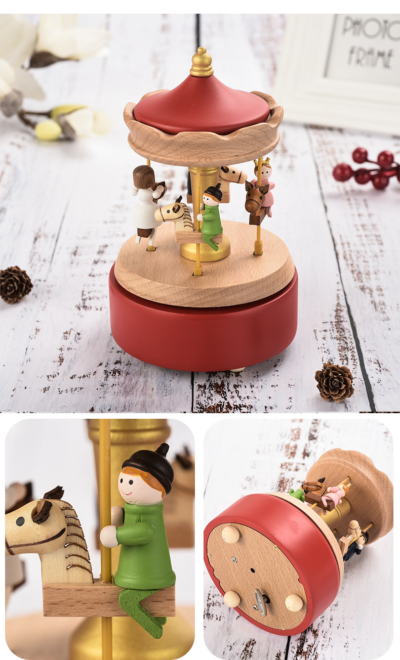 Wooden music box, music box, carousel, romantic Valentine's Day gift, furniture decoration, creative gift giving